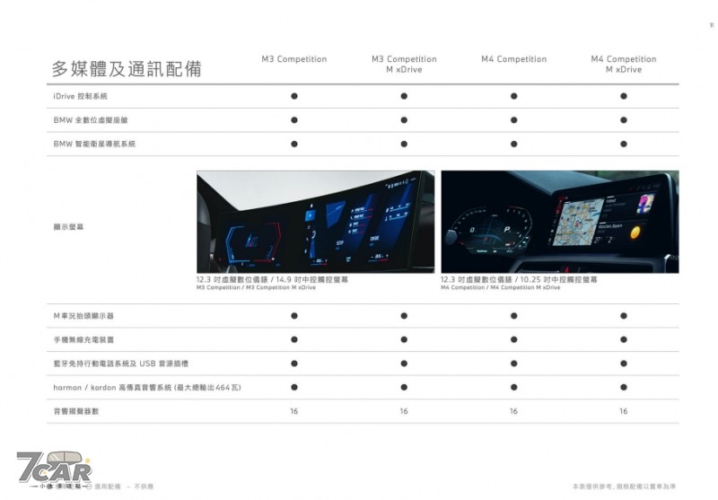 M Power 性能車款方面, M3 與 M4 皆有 8 萬元漲幅,前者新增 14.9 吋的 iDrive 8 中控觸控螢幕,後者則維持原先的 10.25 吋 iDrive 7 系統,編成與建議售價為 M3 Competition (566 萬元起)、M3 Competition M xDrive (586 萬元起) 及 M4 Competition (569 萬元起)、M4 Competition M xDrive (589 萬元起)。最後,M5、X3 M Competition、X4 M Competition、X5 M 及 X6 M 等車型則均調漲 10 萬元。