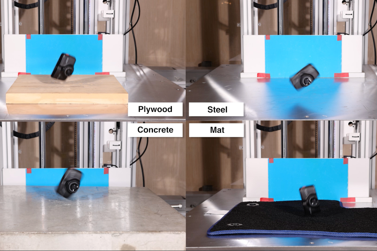 圖說標題:同時也有測試摔落在不同材質,機身的強度是否足夠。