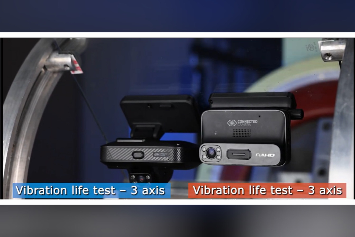 圖說標題:圖片中的行車紀錄器正在接受高頻率振動測試。