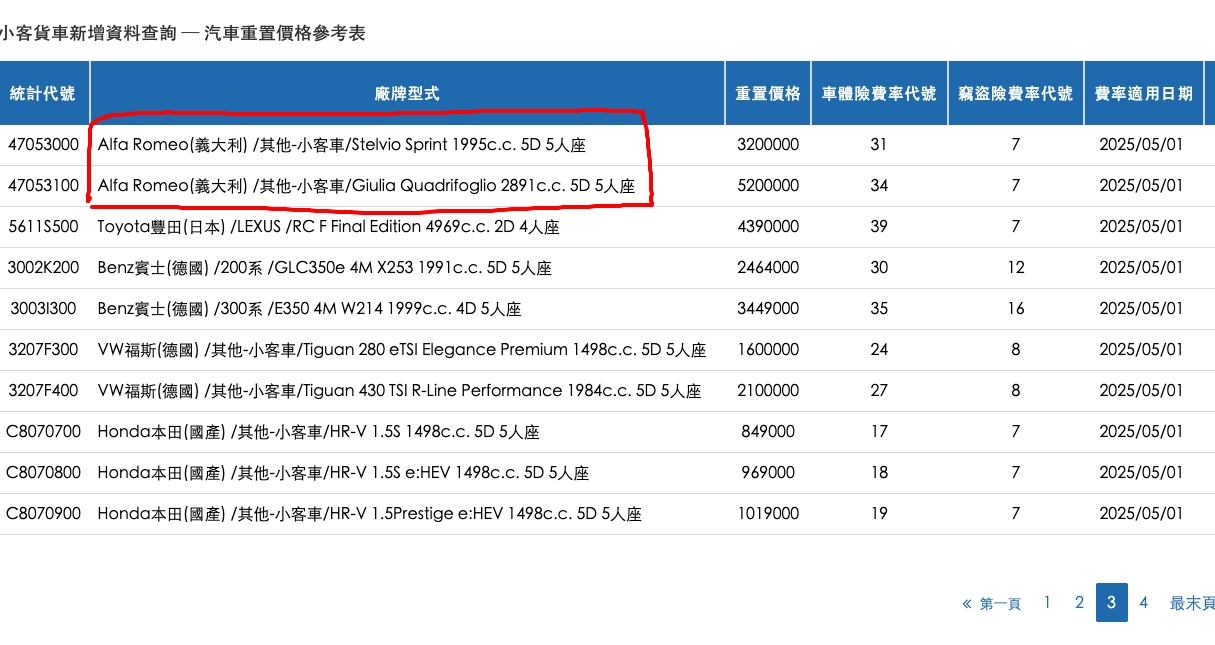 值得注意的是,台灣財團法人保險事業發展中心(簡稱保發中心)網站上,已悄悄出現 Alfa Romeo 旗下三款重點車型的重置價格。這三款車型分別是: