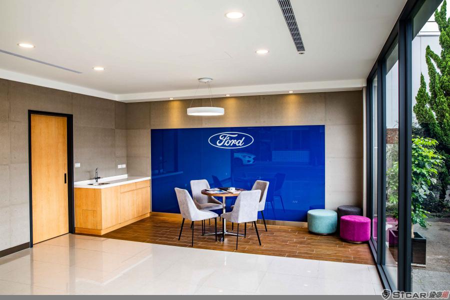 位於台中市南區的Ford九和汽車台中分公司復興據點,是繼台北交車整備中心後,新落成在中台灣的首間升級新車交車整備中心,以寬敞俐落的嶄新格局迎接中台灣地區的新車車主們;內在陳設採用白色亮面的天地牆,搭配個性化的黑色系落地窗框,在陽光灑落下,帶來明淨俐落的視覺效果。其中更結合木質元素,在簡潔設計之中,創造適合全家大小皆可自在放鬆的溫馨空間。除了新穎的裝潢外,更貼心的設有廢氣排放裝置,結合冷房空調,讓車主在免於過多廢氣的舒適環境中交車。