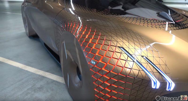 當車輛自動駕駛時,前擋下方的面板將會依照車輛周遭的人/車進行偵測,當有任何狀況時都會透過該面板提醒駕駛注意。