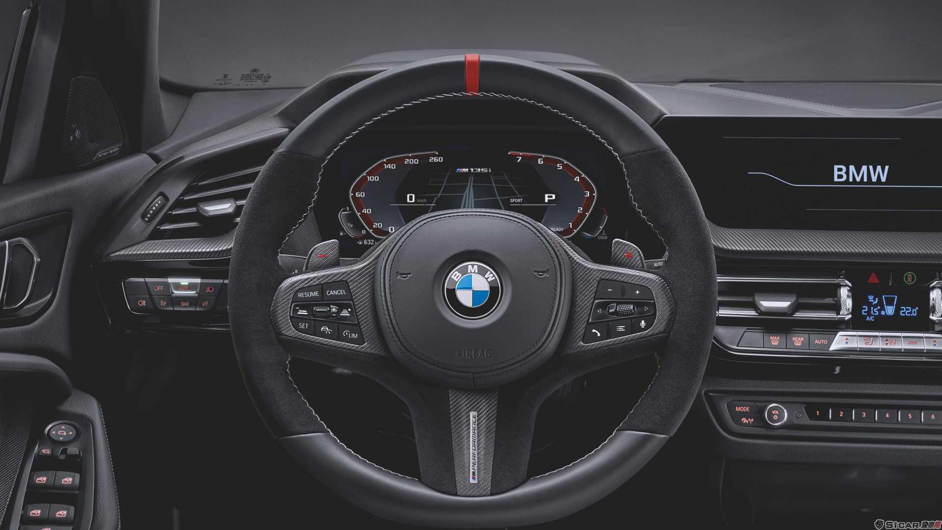 全新的1系列出現後,馬上就穿上了M Performance套裝在M135i xDrive上, 為BMW 1系/ M135i xDrive量身定制的M Performance Parts 19寸框鏡蓋以及下護板為碳纖維製成, 以減輕重量底部的LED投影、顯示在地面上的BMW M Performance徽標,包裹在Alcantara中的M Performance方向盤配有紅色的12點鐘位置,及可提供碳纖維換檔撥片。