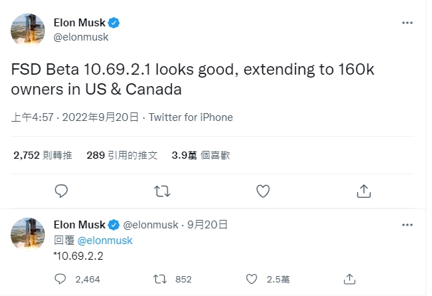 日前特斯拉執行長ElonMusk也在推特表示,最新的FSD beta已經在北美和加拿大推送,並且有16萬用戶正在使用中!