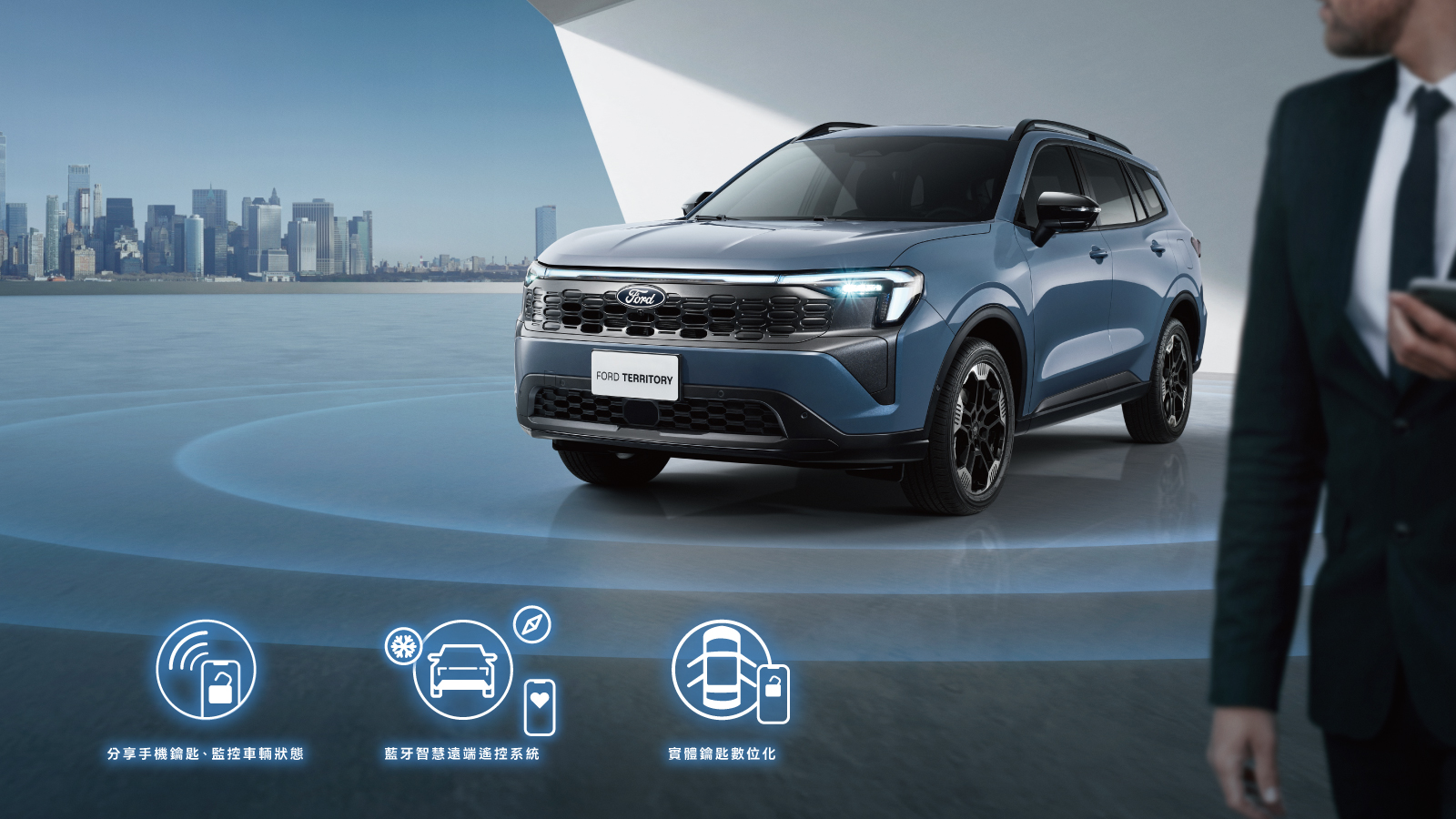 全球戰略車款The All-New Ford Territory正式加入台灣中型休旅市場!集結家庭買家最渴望的寬敞大空間,並揭露Ford全新1.5T Per4mance Hybrid四電驅渦輪油電系統(245ps綜效馬力|油耗20km/L),即日起油電旗艦車型預售啟動〔註一〕,其配置規格超越同級市值約50萬,包含:美國權威評鑑Level 2前三名Ford Co-Pilot360TM全方位智駕科技輔助系統、豪華進口品牌車用科技-MyPaaK(Phone as a Key)手機鑰匙2.0、雙前座通風電動座椅等超規配置,官方預接單價101.9萬(含舊換新及貨物稅減徵補助)〔註二〕,不僅開創台灣全新油電動力系統新篇章,同時也樹立家用休旅配置新標竿。