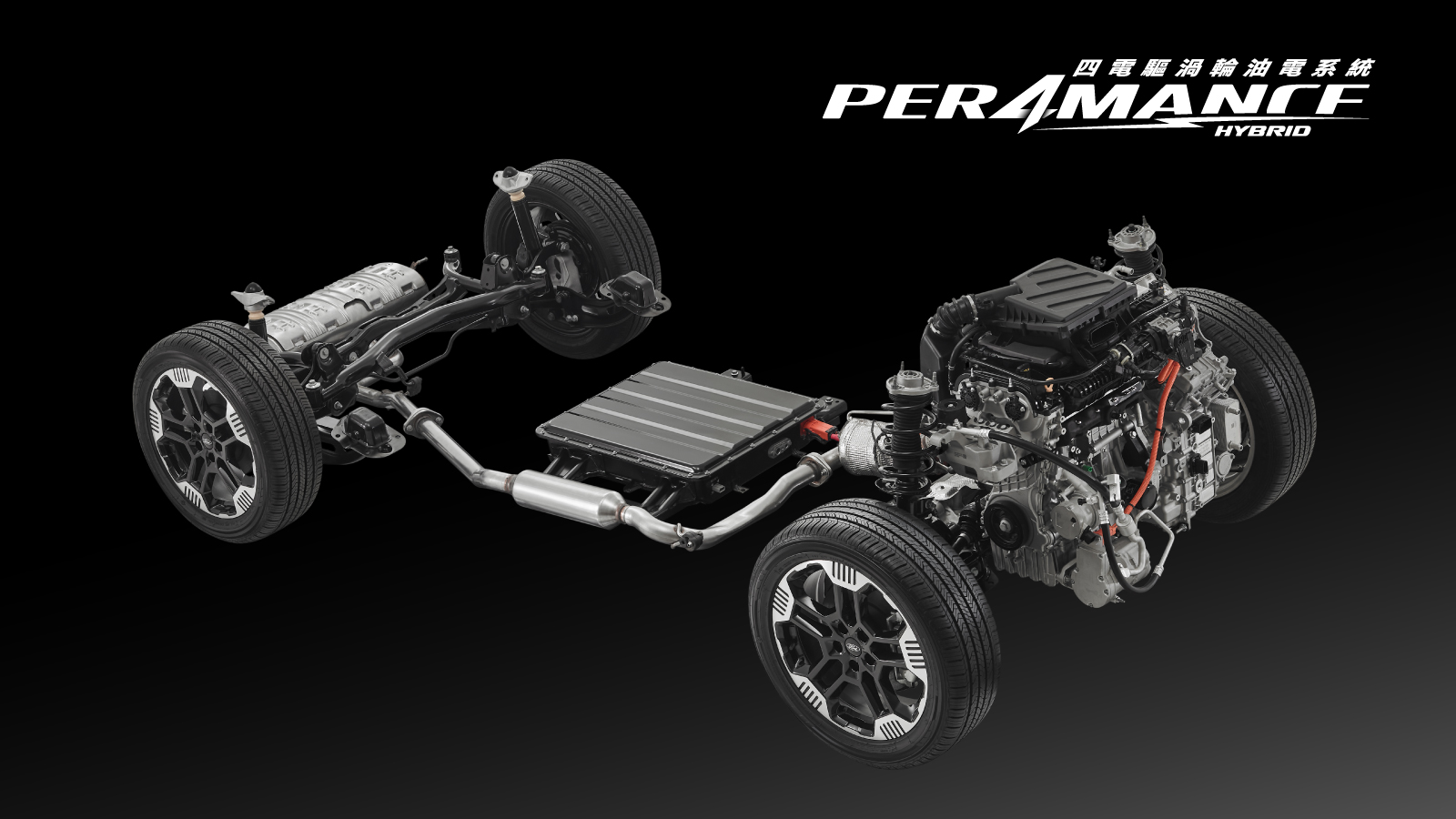 動力系統導入全球市場引頸期盼的「1.5T Per4mance Hybrid四電驅渦輪油電系統」,不僅熱銷全球超過80個市場,並滿足全球家庭買家對油電動力的盼望。此套系統採用了「原生油電工程架構」,採用Dedicated Hybrid Engine專屬油電渦輪增壓引擎以及Dedicated Hybrid Transmission專屬雙速油電變速系統,具備深度米勒循環、13:1高壓縮比與350bar高壓燃油噴射與43.52%高熱效率等技術優勢,並搭配Hybrid 永磁電動 P3 Motor(驅動電機)及Hybrid 永磁電動 P1 Motor(發電電機)實現電能直驅與高效發電,激發綜效最大馬力245ps/扭力55.6kg-m的動力輸出,頂尖性能表現不僅引領同級,同時更具備20.0km/L最佳平均油耗,展現出節能與動能兼具的駕馭風情。