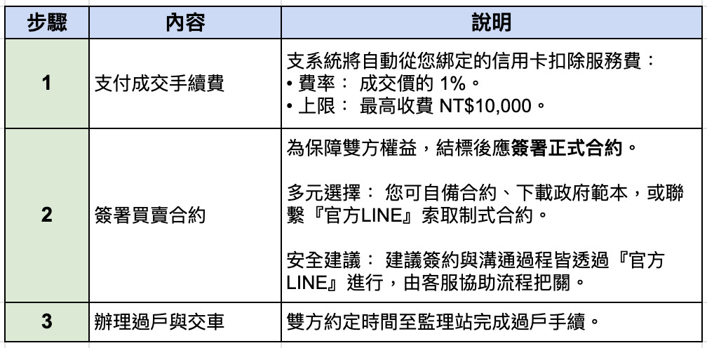 恭喜得標!請依照以下步驟完成最後的交易程序: