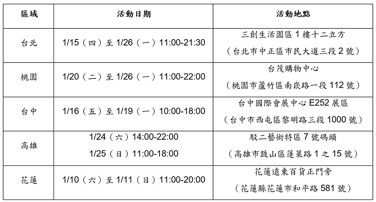 其中1月15日至1月26日進駐台北三創園區1樓十二立方,現場將展示新紀元油電雙能休旅The All-New Ford Territory、歐洲超能智駕跑旅The All-New Ford Kuga、美式智駕運動皮卡New Ford Ranger以及歐洲進口正七人座New Ford Tourneo Connect福特旅玩家,現場更規劃1.5T Per4mance Hybrid四電驅渦輪油電架構 & 鋼骨結構實體展示區,透過完整的展區規劃,打造專屬於Ford的品牌舞台,展現Ford橫跨多元級距、具備完整廣度的產品陣容。