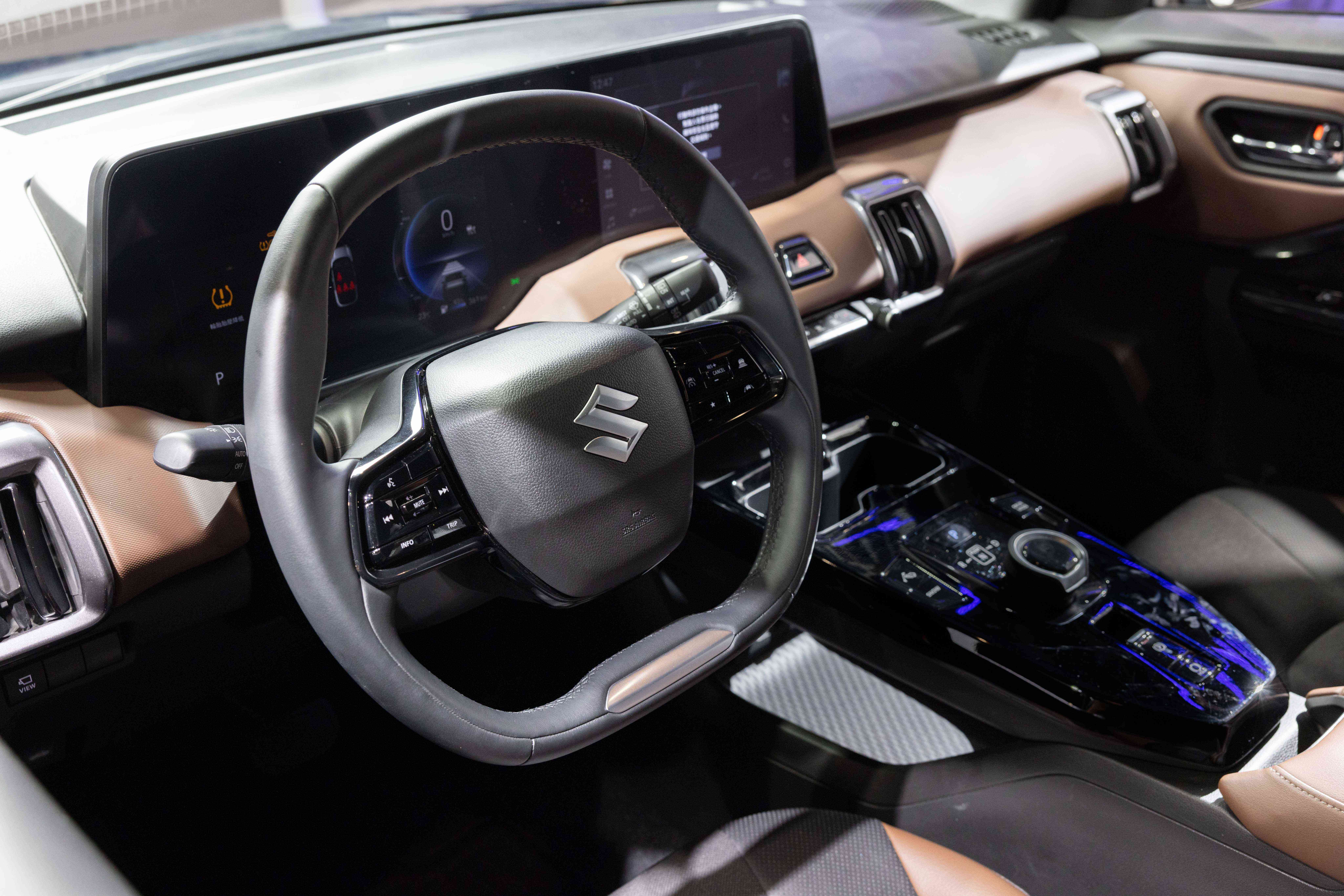 中央控制台採懸浮式結構自然延伸至 Shift-by-Wire 電子旋鈕排檔的位置,並將四驅模式切換、電子手煞車等功能集中配置,使操作更直覺便利。車室氛圍燈提供 12 色可調設定,營造多層次科技質感。