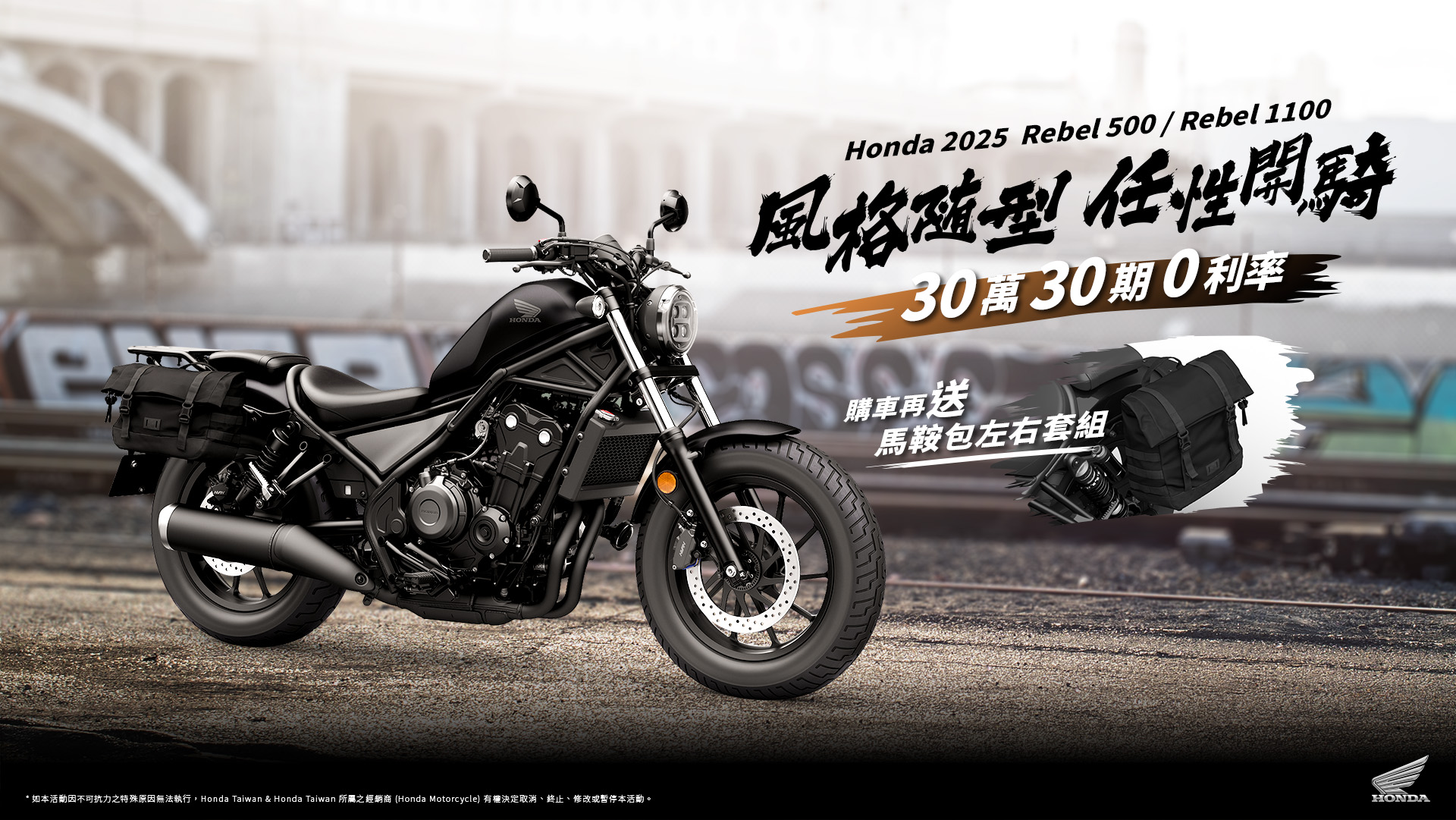 Rebel500、Rebel 1100 享30萬 30期 0利率 購車再送馬鞍包左右套組