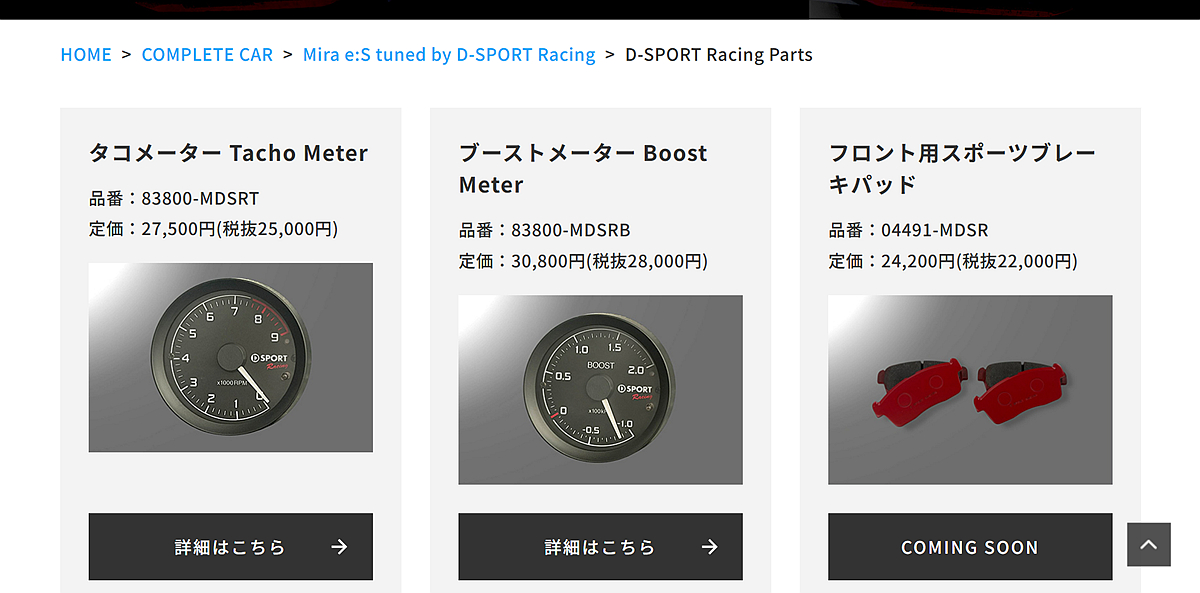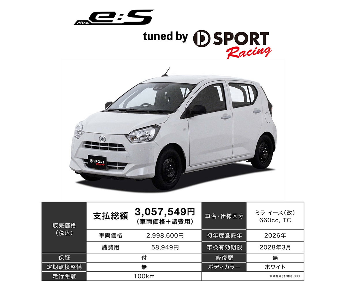 取自Daihatsu和SPK株式會社共同營運的D-Sport Racing Team賽車領域經驗,Mira e:S tuned by D-Sport Racing延續當時概念車「讓每個人都能享受到駕駛的樂趣」的初衷,讓K-Car輕型自動車也能有豐沛的駕馭樂趣。