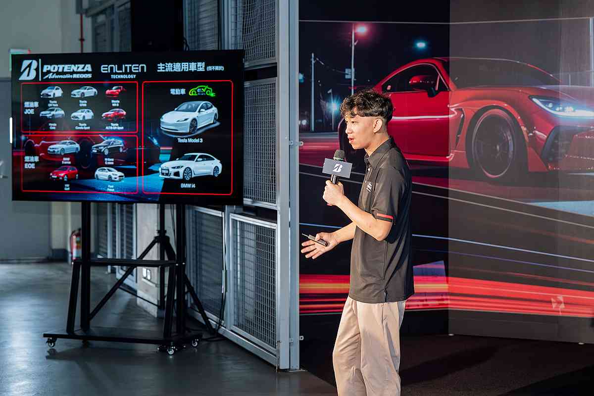 RE005 也同步導入創新 ENLITEN 技術,透過專屬輕量化材料與先進製程,有效降低滾動阻力並提升耐磨表現,不僅大幅降低能源消耗,也有助於延長電車續航里程,滿足新世代電動車駕駛對效率與駕馭樂趣的雙重需求。