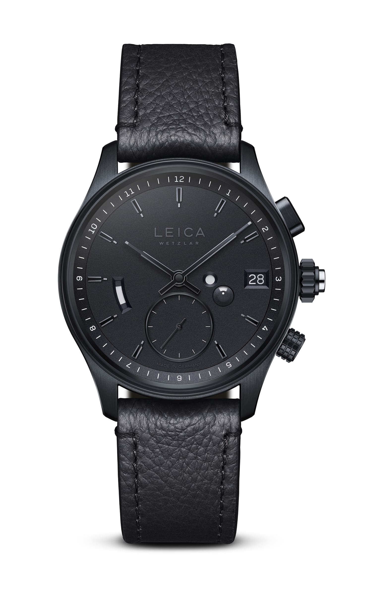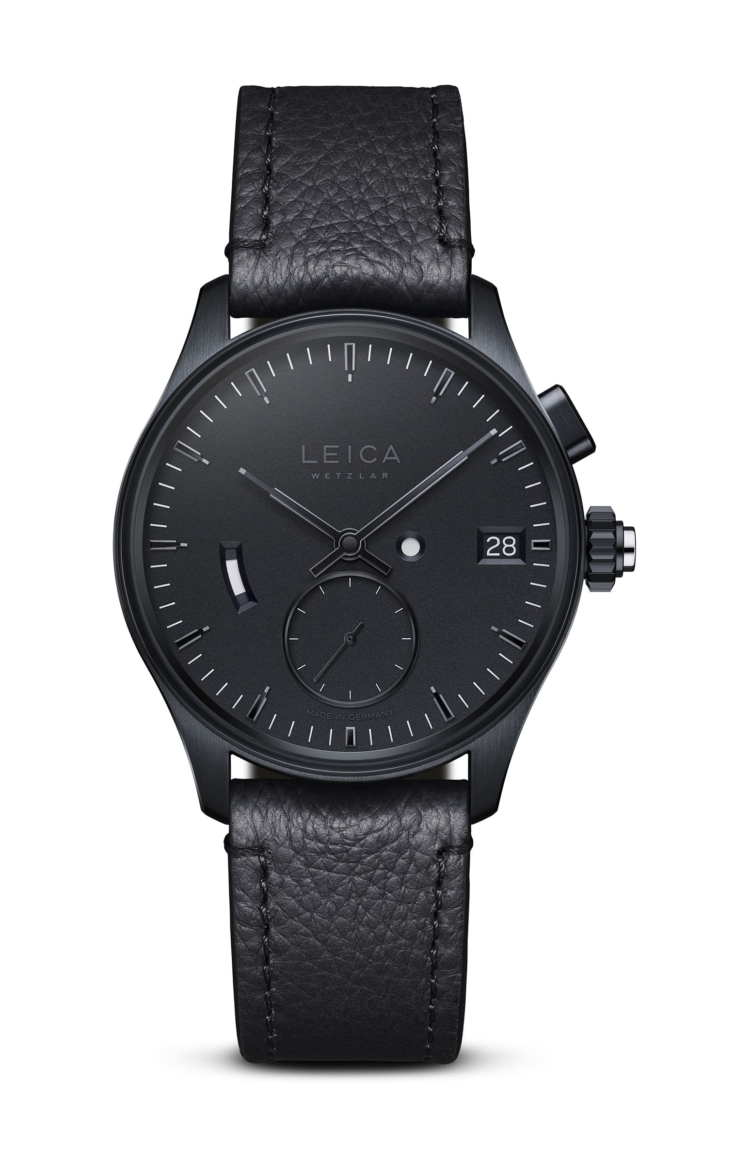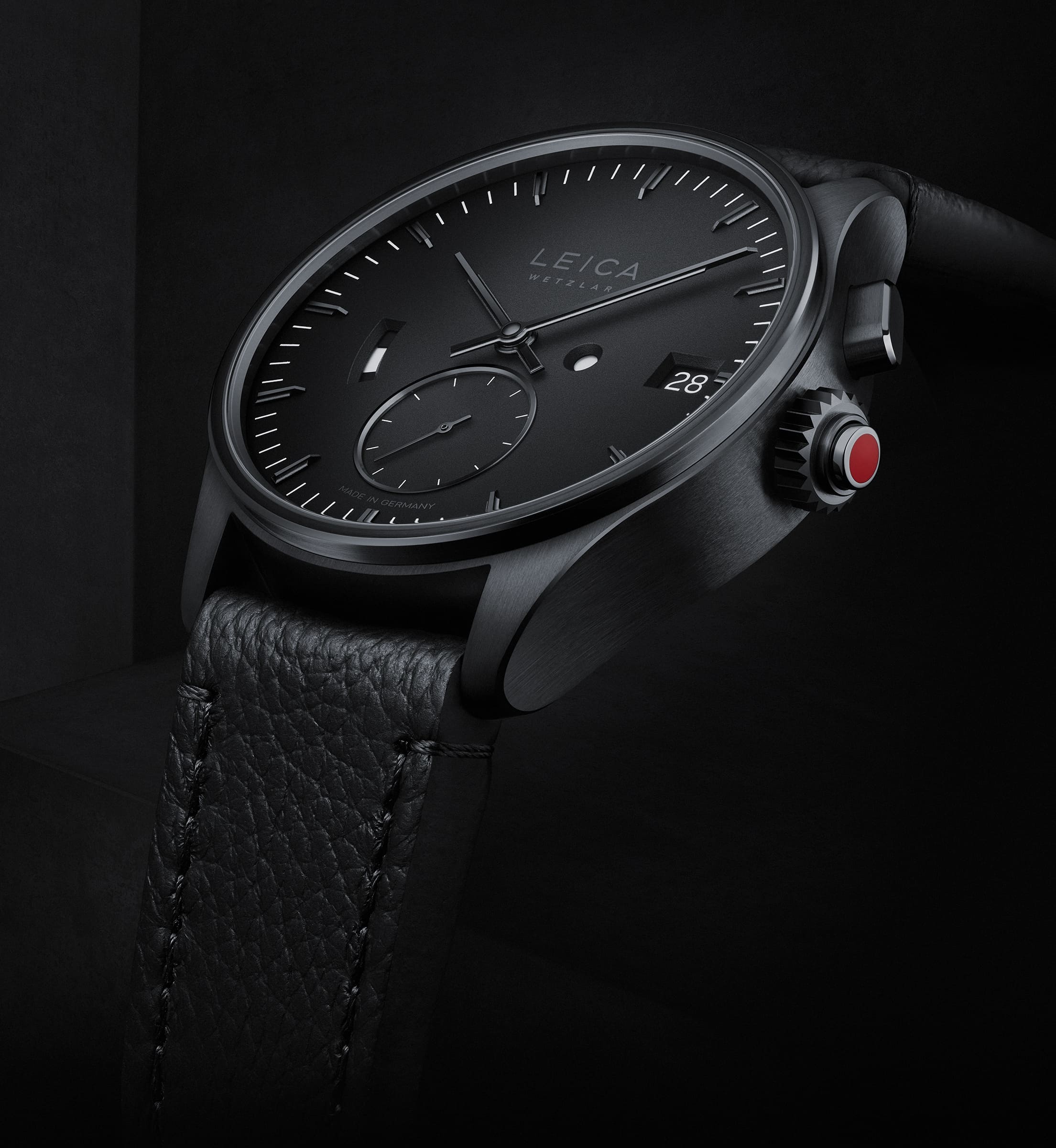 徠卡腕錶ZM Monochrom版設計獨特,去除了所有色彩元素和銀色色調,僅保留 “紅點”設計,實現了真正意義上的極簡主義美學。在防眩光的球面藍寶石玻璃之下,是經過鍍銠、金剛石刻磨以及噴砂處理的黑色指標和錶針。錶盤以及錶盤支腳均由高強度鋁實心體打磨而成,增強了產品的抗震性能。此外,Monochrom版腕錶的錶帶與M11 Monochrom相機採用相同材質——厚實的黑色小牛皮革製成,並採用手工縫線的邊飾,使徠卡腕錶ZM Monochrom版堅固耐用、精緻美觀。