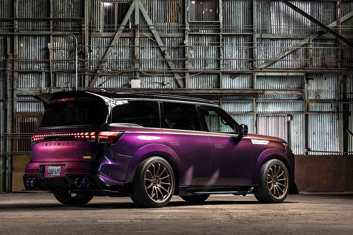 Infiniti汽車一展改裝實力,將原本配置於Nissan GT-R NISMO的VR38DETT雙渦輪增壓引擎,移植至QX80旗艦休旅上,並且再透過強化如Garrett G渦輪、JE活塞、MOTEC引擎管理系統、ETS排氣歧管以及專屬客製套件等壓榨出1,000hp馬力輸出。