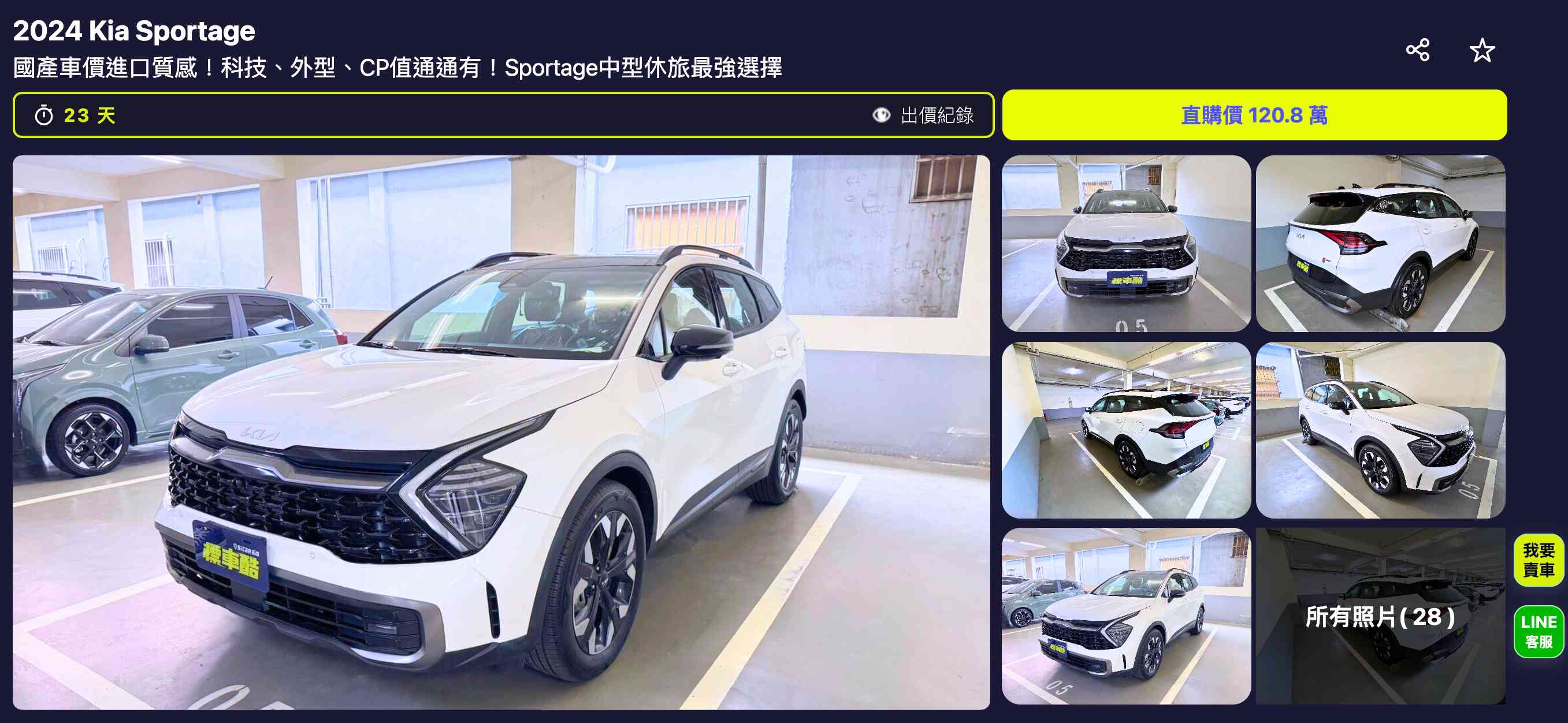 標車酷站上這台,連小編都心動了!這台2024年 KIA Sportage 兼具設計、性能與科技配備,誠意滿滿又價格實惠,新車價143.9萬,車齡不到一年,里程才13公里,要到哪裡去找啊!若你正在找一台「有質感又不傷荷包」的全方位休旅,別錯過這次機會唷!