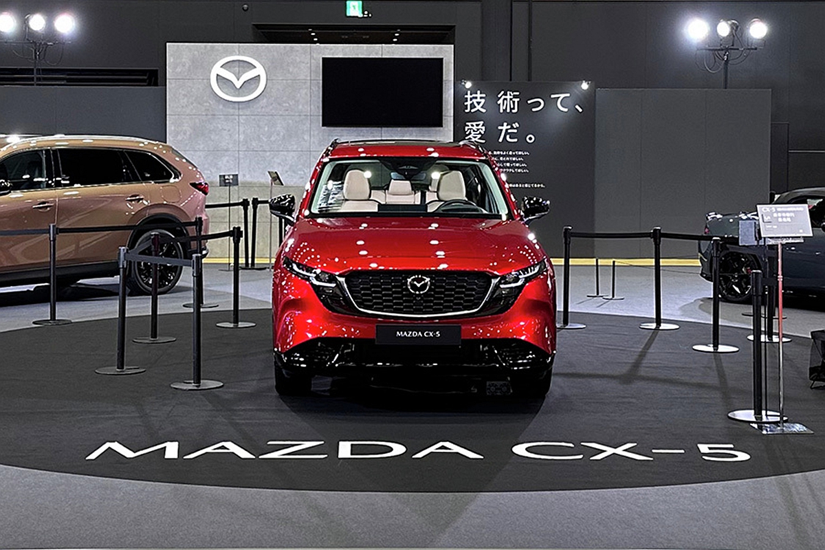 特別的是,將於東京沙龍(改裝)車展亮相的新世代Mazda CX-5,並非是Japan Mobility Show日本移動展那台採用Soul Red Crystal Metallic晶艷魂動紅的展示,而是更為內斂且深沉的「雲母黑」新車色並搭配全車黑化套件。