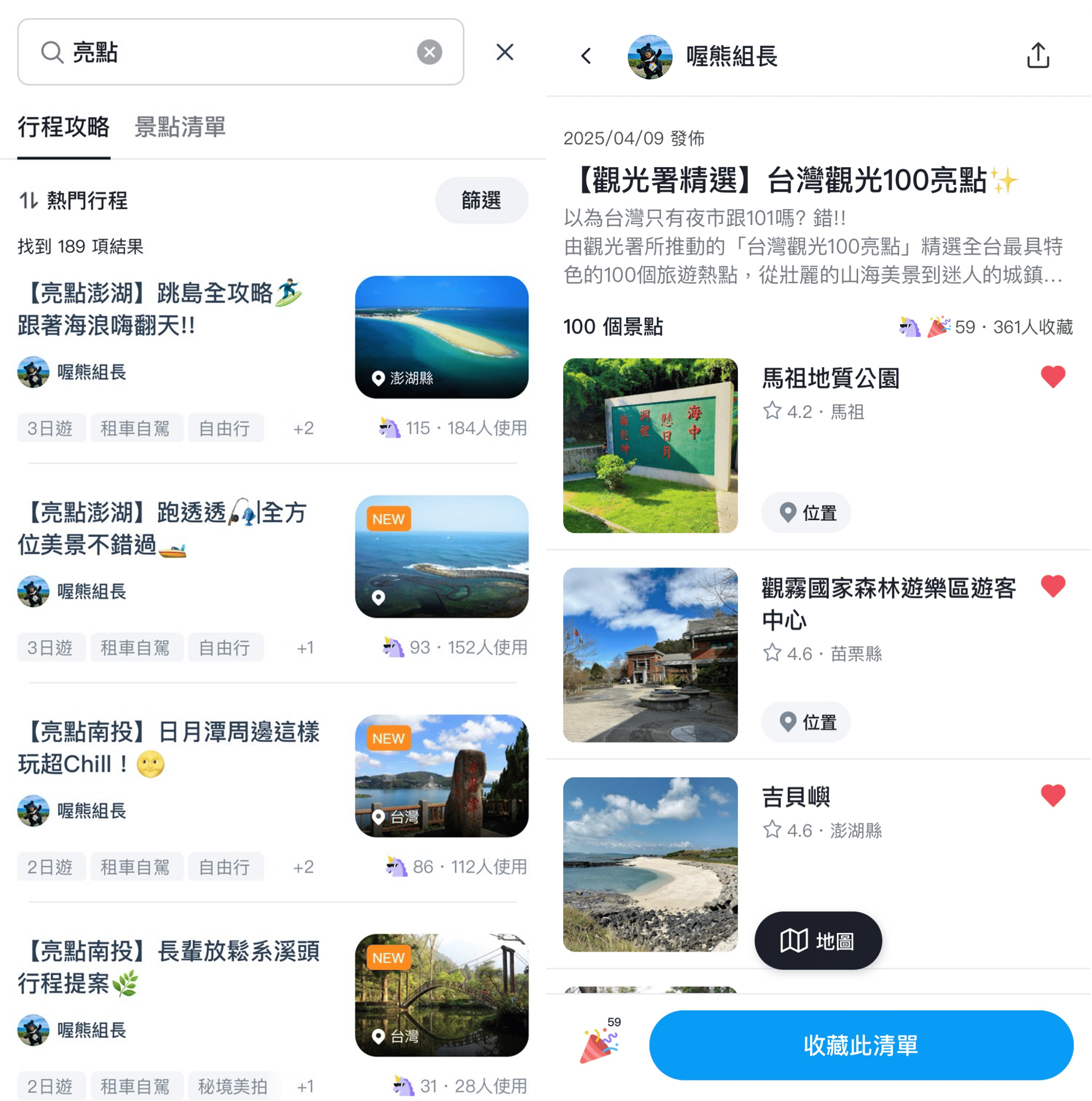 透過數位平台整合旅遊、交通與住宿等資源,去趣chicTrip讓旅客能以最直覺的方式規劃旅程,從找靈感、看行程到出發,一站就搞定。旅行可以很簡單。只要打開去趣chicTrip,就能找到靈感,直接出發。現在就下載去,讓去趣chicTrip陪你一起出發探索台灣,體驗屬於你的旅遊樂趣!