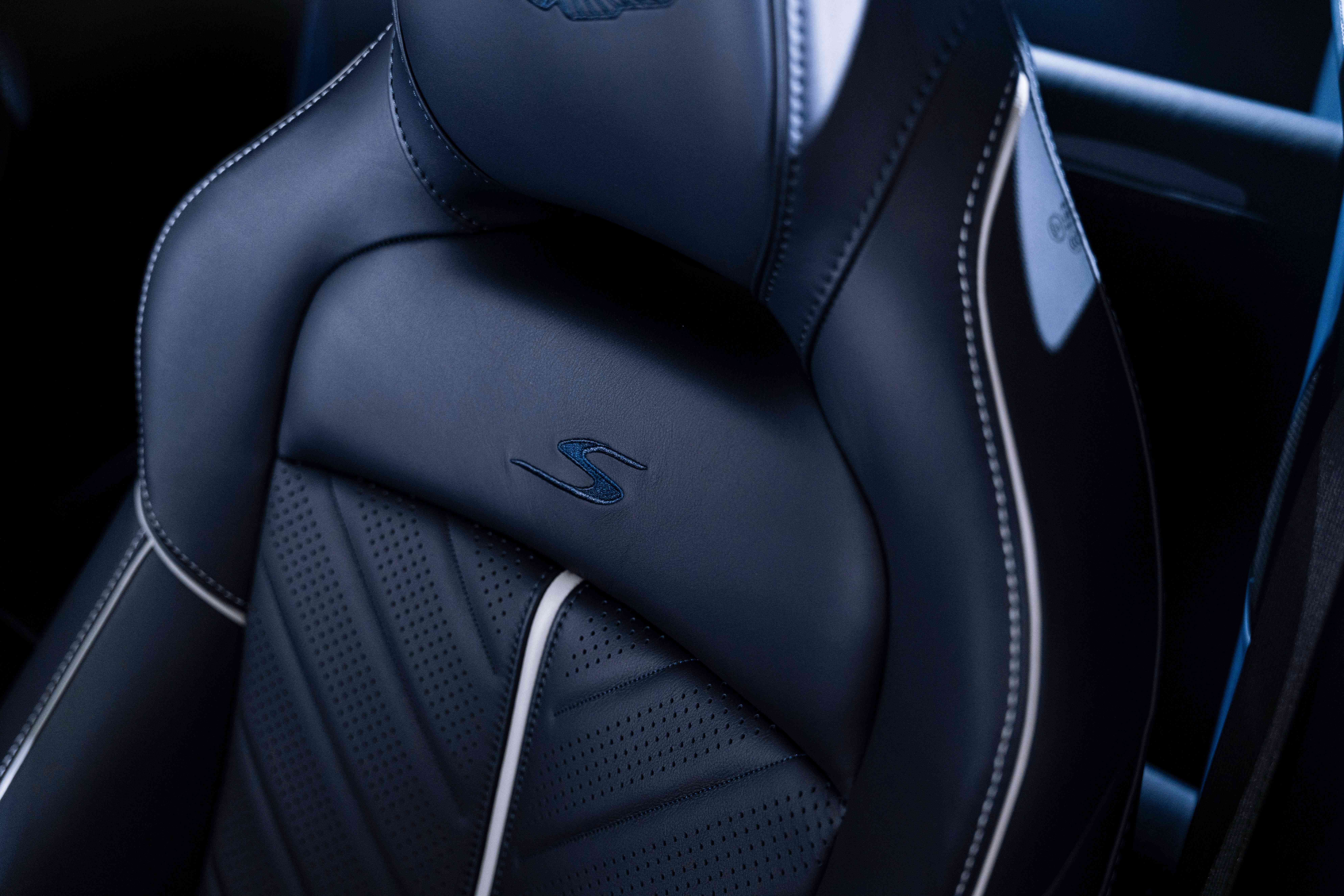 全新 Vantage S 內裝延續 S 車型專屬設計語彙,標配由 Alcantara 與真皮共同構成的 Accelerate 極速座艙配置輔以碳纖維飾板,營造濃厚且純粹的運動氛圍。座椅頭枕飾以專屬「S」字樣刺繡,每一組刺繡需耗費近 2,500 針、超過 16 公尺絲線,細節之處充分展現 Aston Martin 對極致工藝與質感的堅持。車主亦可選配車壇首創的立體雕刻工藝,透過高達 1.5 噸壓力並結合高溫處理技術,在皮革表面雕刻出具毫米級精準度的立體 Aston Martin 廠徽,呈現前所未有的觸感與視覺層次。