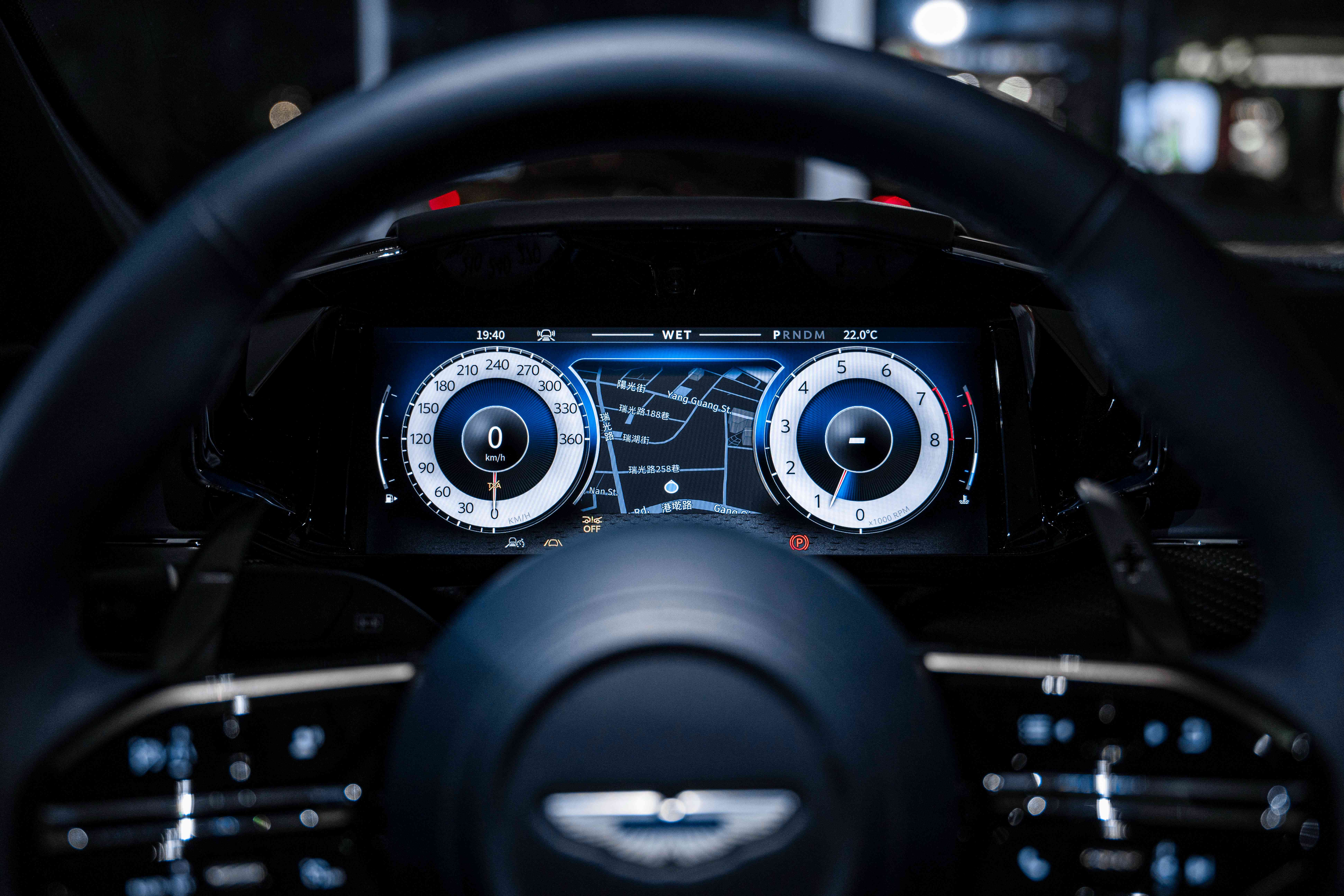 在選配層面,Vantage S 提供專屬紅色視覺語彙套件,包含 21吋消光黑色Y字型鍛造輪圈以及紅色陽極處理駕駛模式旋鈕。此一配色概念更延伸安全帶、座椅飾條、縫線與座椅頭枕繡線徽飾,形塑全車一致且鮮明的動感視覺風格。