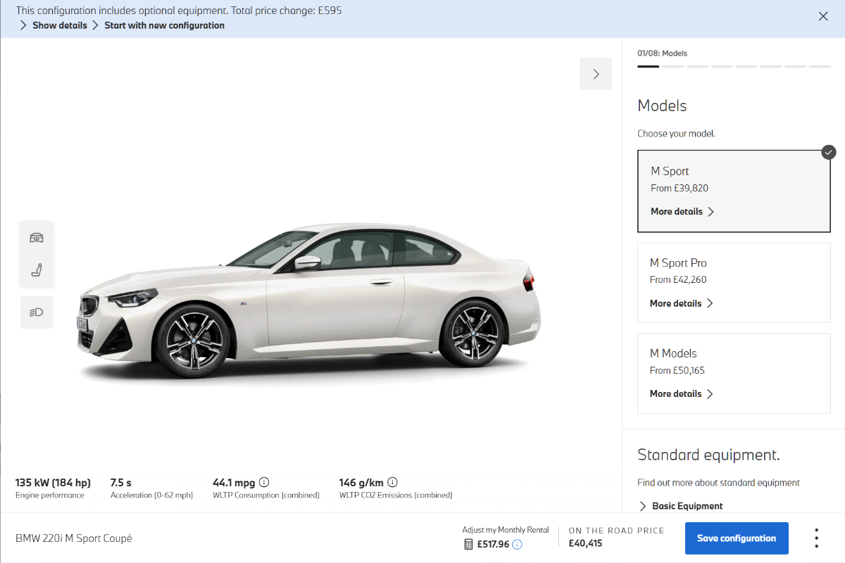 根據英國Honda的官網,Prelude只在當地推出Advance單一車型,售價為39,595英鎊,加上相關費用與稅費之後,總價來到40,995英鎊,約新台幣168.3萬元,而BMW 2系列雖然不是直接競爭關係,也沒有混合動力,但售價上極為接近,空車價錢為39,820英鎊,算上稅費為40,415英鎊,約新台幣165.9萬元。
