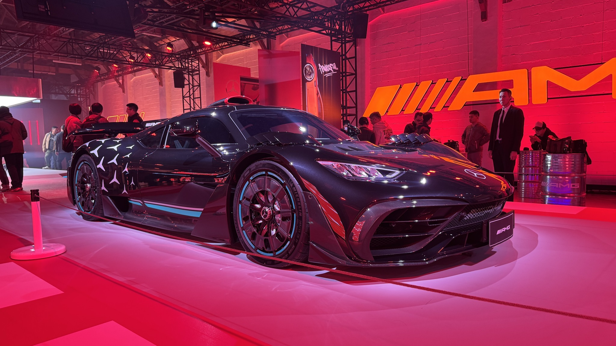 而前兩天晚上,為了讓車迷大飽眼福,還特別掛試車牌駛入信義計劃區讓車迷拍的夠,2026 年 1 月 24 日(六)– 1 月 25 日(日)在台北松菸文創園區 3 號倉庫展出。展覽以性能極限為主軸,現場還有多款 AMG 車型,包含AMG One都特別來到現場。