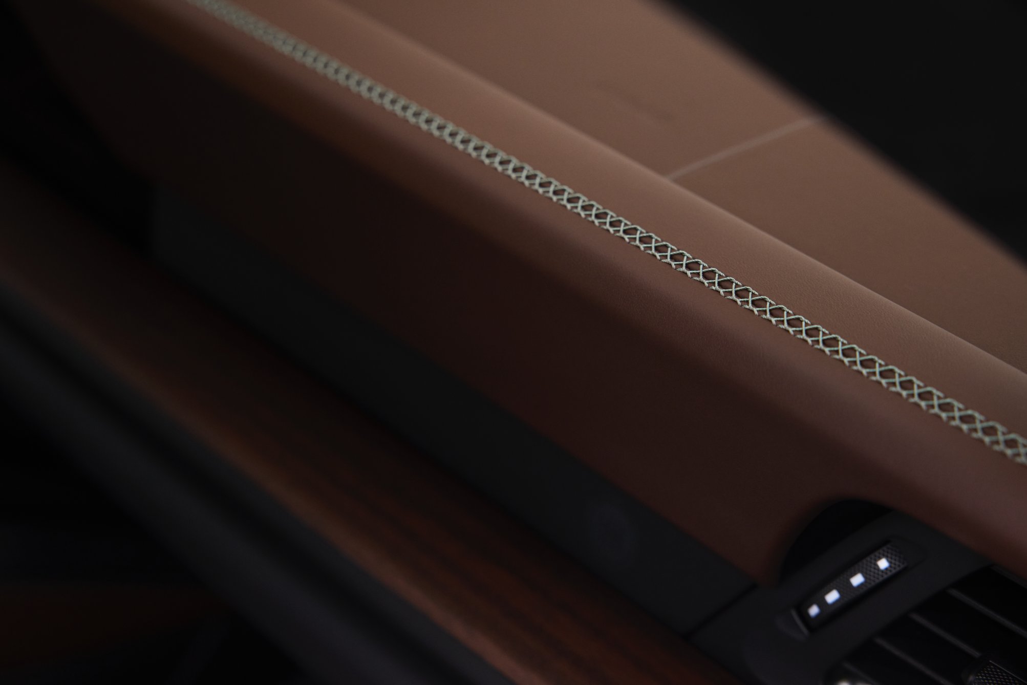 車室設計延續台灣地景的敘事,以 Paldao 木紋飾板象徵山脈與綠意。其全賽車桶型座椅採用松露棕(Truffle Brown)與黑色皮革進行個性化雙色搭配,並以獨特的夜綠色(Night Green)縫線點綴,盡顯奢華。內裝的另一大亮點,是為此車型首次開發的全新「Formosa」格紋圖案,採用夜綠色、黑色和米白色的獨特組合。這款專屬格紋飾板應用於座椅中央,並延伸至全皮革包覆的前行李廂內襯,前行李廂內襯上同時飾有精緻繡製的「Formosa」字樣。
