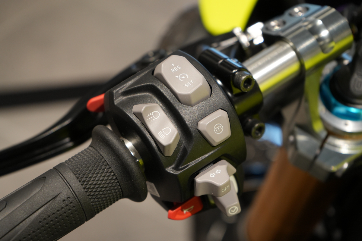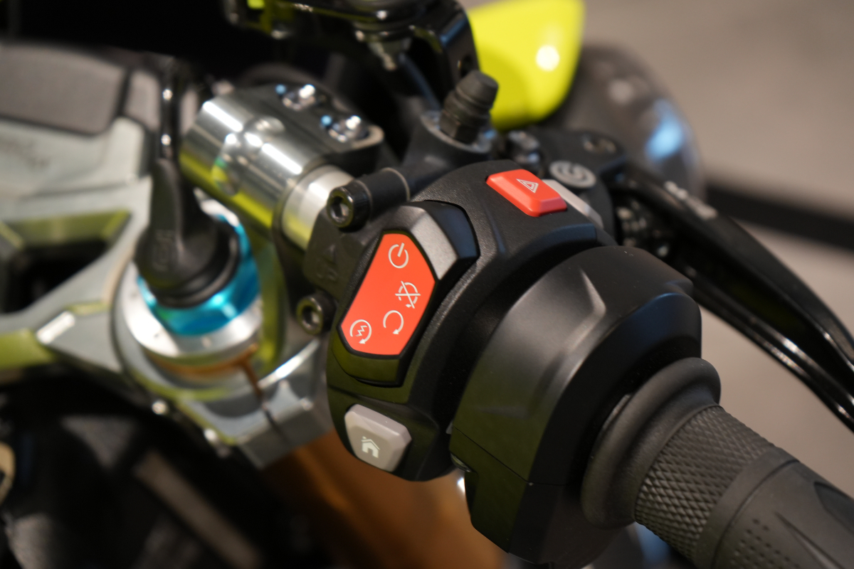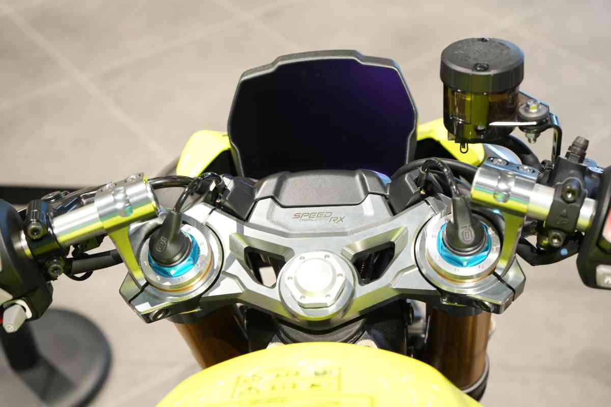 制動方面採用Brembo Stylema對四輻射卡鉗,與320mm的雙浮動碟,總泵同樣也是使用Brembo MCS,強大之處還能由騎士調整拉桿間距與放大比,讓你的煞車手感隨時處於甜蜜點。而RX配備5段騎乘模式,分別為Road、Rain、Sport、Track與自訂等,也配有6軸IMU慣性測量,達到彎道ABS、彎道循跡控制等尖端科技配備。