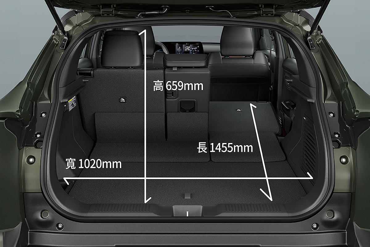 e VITARA 具備可開啟式遮陽簾的玻璃車頂(804 × 489 mm),有效放大座艙明亮度與視覺寬闊感。後座可前後滑移 160 mm,並提供十段共20度的椅背角度調整,搭配 4:2:4 分離式座椅設計,使長形物品與乘客舒適性兼顧。中央座椅可折疊作為扶手,也可形成物品收納通道,行李廂容積最高達 306L,提供彈性空間應對各種旅程需求。