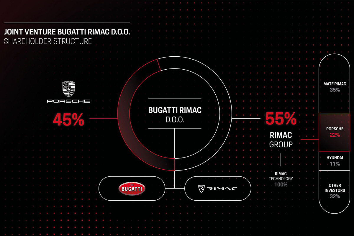 為使Bugatti超跑品牌有更好的發展,Porsche保時捷於2021年與Rimac集團合資成立企業Bugatti Rimac。當時Porsche保時捷持有45%股權,而Rimac集團則握有過半55%股權,不過Porsche保時捷則也握有Rimac集團20.6%的股權。