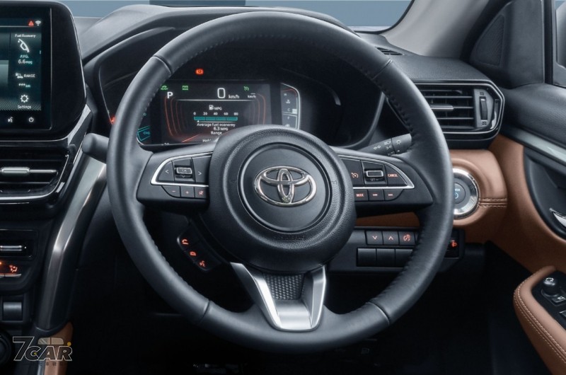 進到車內,Urban Cruiser Hyryder 換上自主設計的內裝鋪陳,配有 9 吋多媒體系統與 7 吋數位化儀表,而中控台與門飾板均使用軟質塑膠,高階車型甚至加入雙色內裝及皮質包覆來提升車內質感。配備方面,則有全景天窗、環艙照明、抬頭顯示器、360 度環景、無線充電板、通風座椅、後冷氣出風口和後 USB 充電插口等。安全表現上具備 6 顆氣囊及各項主被動系統,可惜無配置 ADAS。