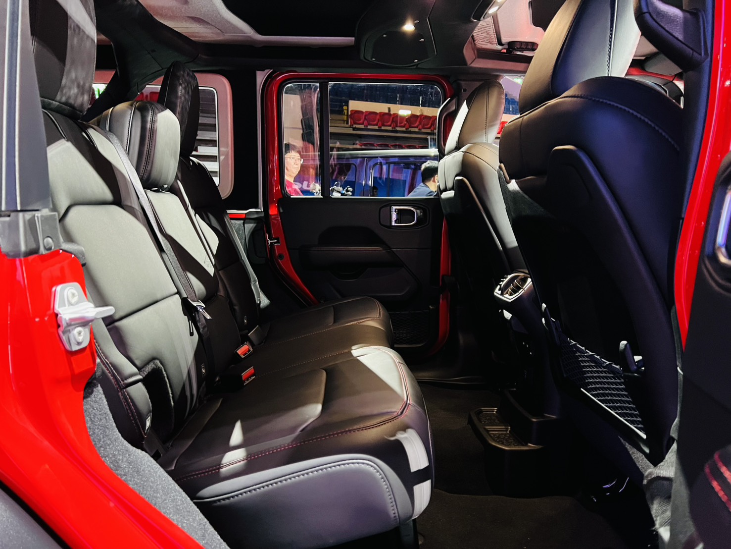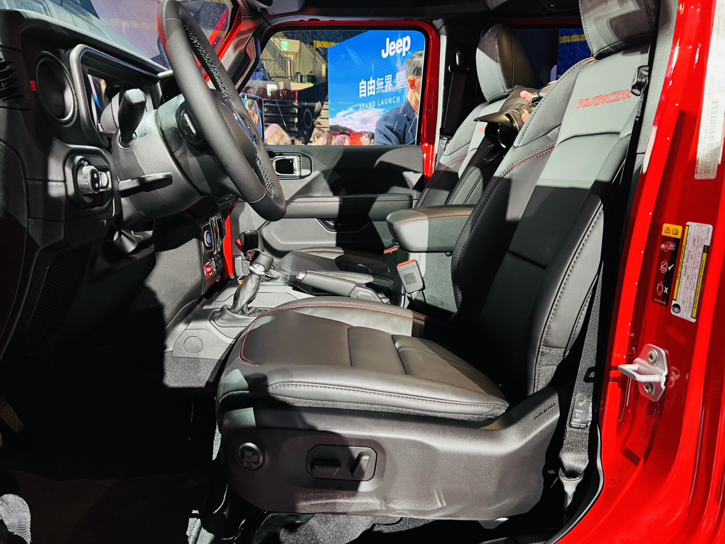 座艙材質依車型呈現不同風格定位。Sahara 採用柔軟且支撐性佳的 McKinley 豪華皮革座椅,並以象徵砂岩地貌的沙漠黃縫線點綴,營造舒適、從容且適合長途旅行的座艙氛圍。Rubicon 則以耐磨度與質感兼具的 Nappa 頂級皮革座椅搭配熔岩紅縫線,呼應其強悍越野本格與旗艦車型的身份,在視覺與觸感上展現更濃烈的越野性能意象。