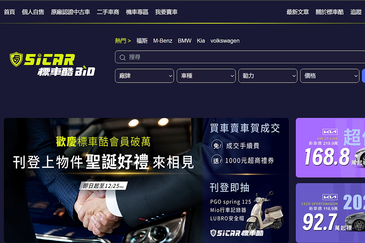 SiCAR標車酷全新功能上線,不只招攬中古車商、CPO經銷商以及機車等賣家,對於自售賣家也提供相同完善且便捷的C2C中古車競標交易服務平台。替自售賣家打造一個符合價格期待、找到合適買家且安全又透明的新拍售模式。
