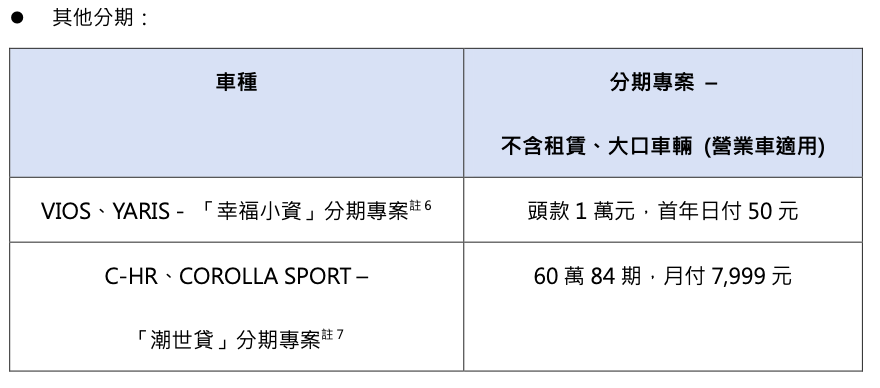 註7:C-HR、COROLLA SPORT「潮世貸」活動限制為: