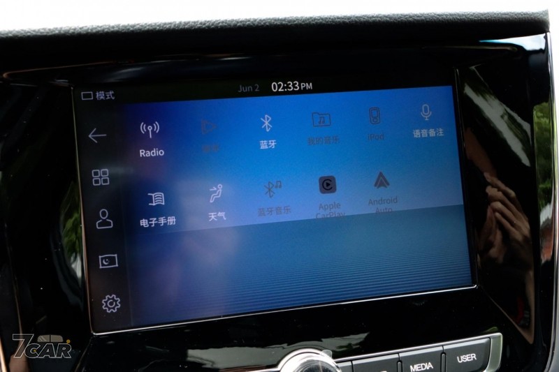 8 吋多媒體主機支援 Apple CarPlay / Android Auto 手機連接,整體操作反應速度上乘,選單層次亦不紊亂,但介面設計有些老氣,沒有繁體中文語言同樣可惜了些。