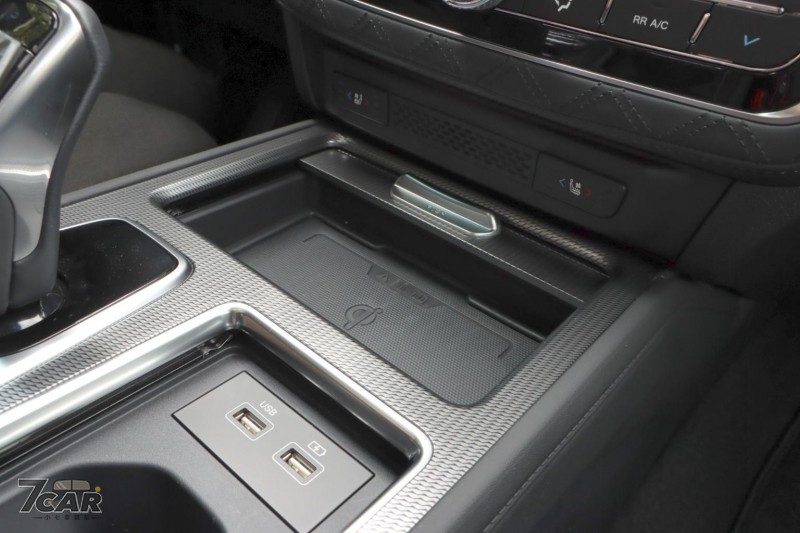 前座具備雙 USB Type A 插孔及手機無線充電板,符合現代車款要求。