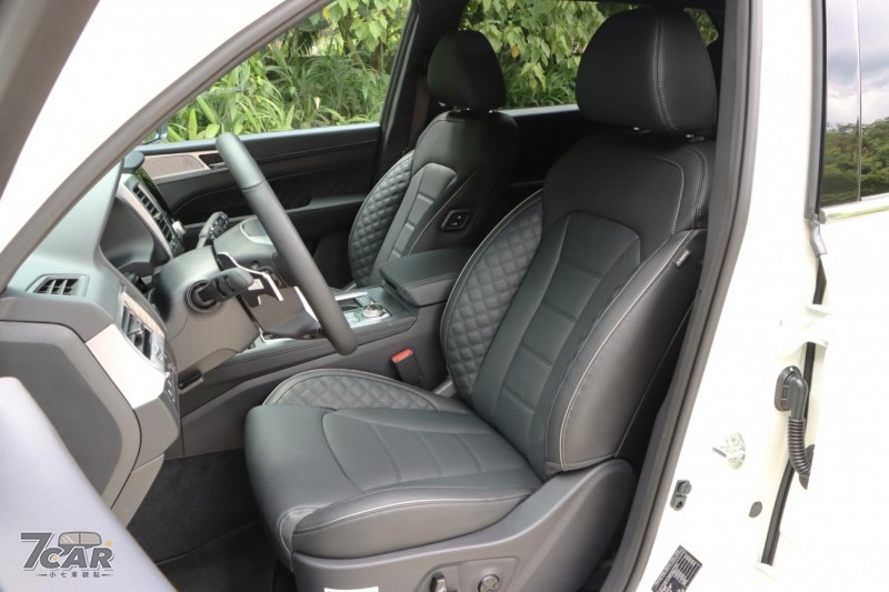 雙前座採 Nappa 材質搭配菱格紋縫線營造出不俗質感,並具備電調、加熱 / 通風機能,整體乘坐舒適性優異,另外駕駛座更具備迎賓進出模式。