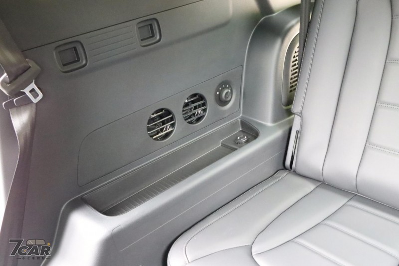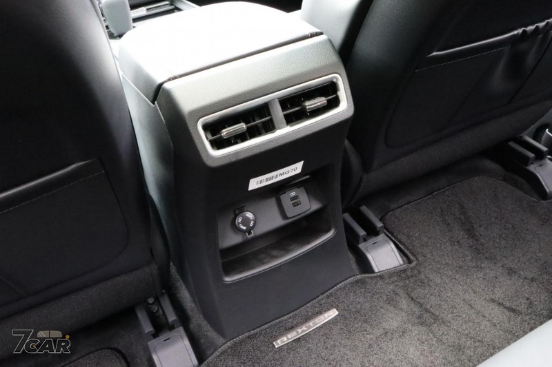 除了典型的後座出風口,第二排中央也提供 12V 及雙 USB Type A 充電孔,貼近現代人生活需求。