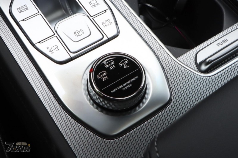 分時四驅系統為本車重點特色之一,這類系統因不具備中央差速器,無法於柏油路面啟用四驅(2H 模式下為後輪驅動),但啟用後其預先鎖定、前後50:50 動力分配的硬連接特性,有時卻是脫困關鍵,另外加力箱亦可再進一步放大輪上扭力。