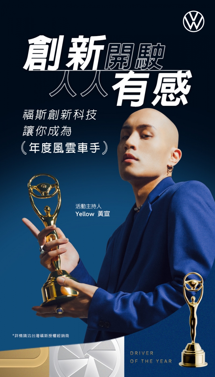 台灣福斯汽車率先打造車壇金鐘獎2022「年度風雲車手」,適逢第57屆金鐘獎,為福斯人獻上專屬盛典,由音樂創作人Yellow黃宣擔任活動主持人,突襲全台Volkswagen車主,此次以「創新開駛,人人有感」為主題,頒發「新手福斯人」、「熱血福斯人」、「耐力福斯人」、「美技福斯人」、「可靠福斯人」、「重拾自信福斯人」六大獎項,透過Volkswagen領先車壇的IQ.DRIVE智能駕駛輔助系統,解決平時開車痛點,此外,先進的引擎技術、靈敏轉向系統、煞車系統和扎實的底盤調校,享受前所未有的極致駕馭感,歡迎消費者至活動官網預約報名,成為下一位入圍車手;不僅如此,隨著萬聖節、單身節即將到來,Volkswagen展示中心同步舉辦周末主題試駕,敬邀消費者一起歡慶節日,在2022尾聲共享周末歡樂時光。
