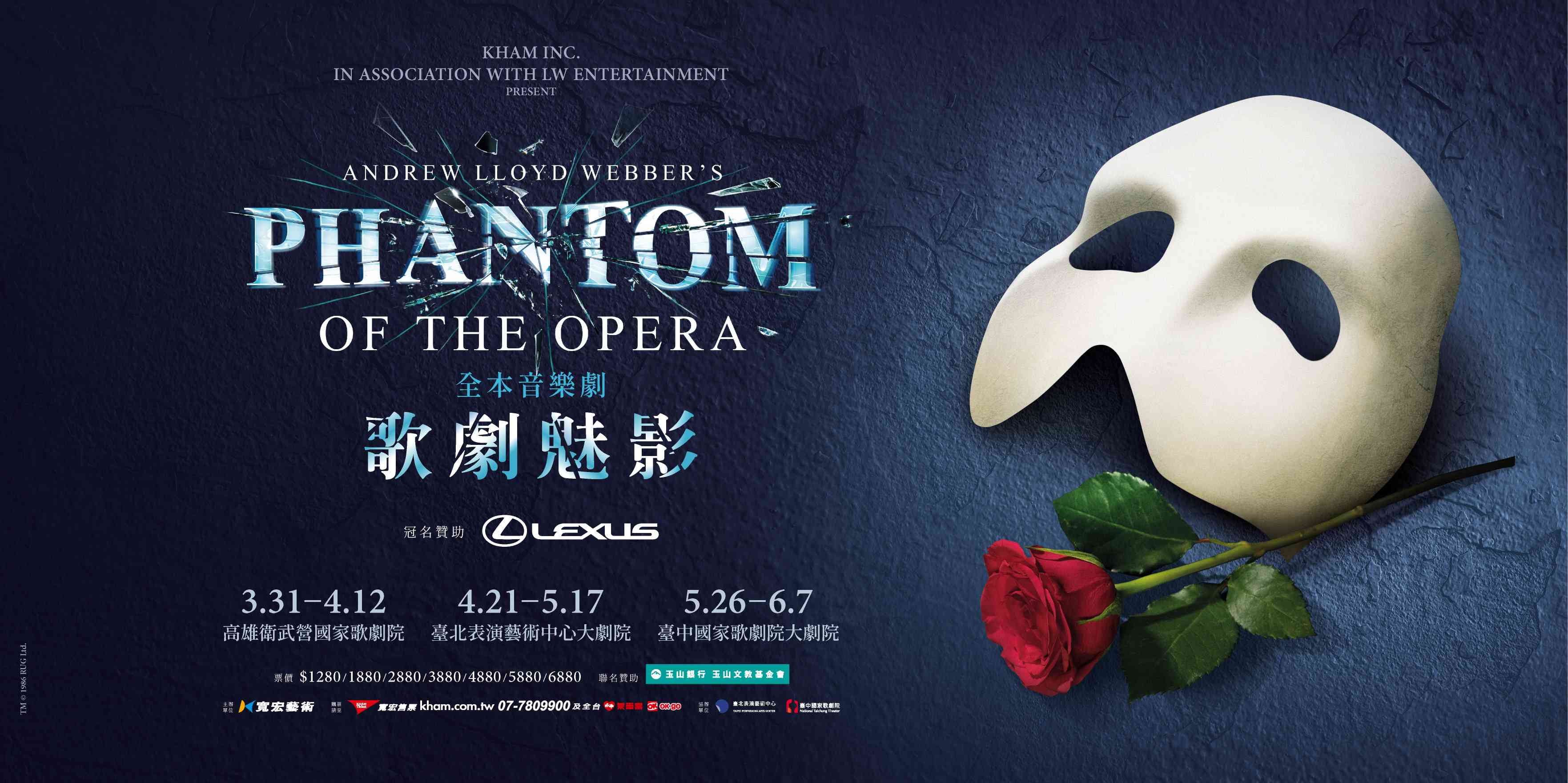 全球矚目的《歌劇魅影》全本音樂劇巡演即將於2026年盛大登台,橫跨高雄、台北與台中三大城市演出64場,勢必再度掀起音樂劇熱潮。為回饋廣大Lexus車主,此次特別提供$4,880(含)以上票區 95 折的尊榮購票優惠,邀請車主親臨現場,沉浸於這部跨越四十年、震撼全球的傳奇巨作,感受《歌劇魅影》獨有的磅礡氣勢與永恆魅力。