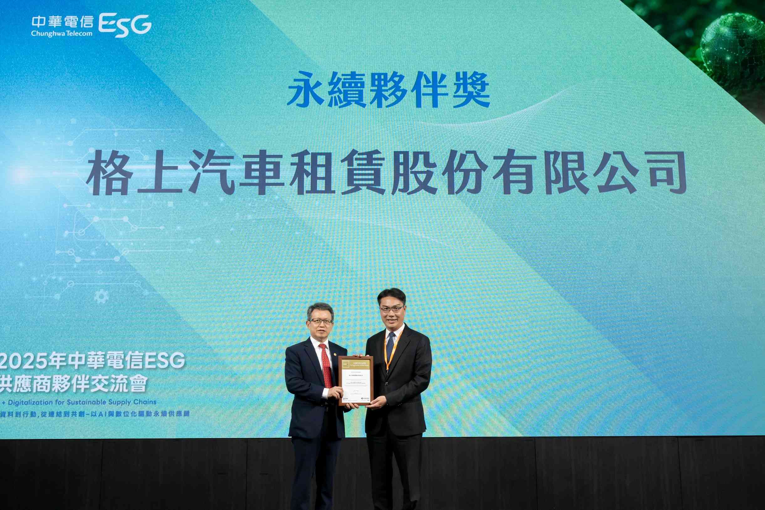 租賃業唯一 格上租車取得中華電信「金級供應商」認證落實永續供應鏈承諾 攜手各界推動ESG永續發展