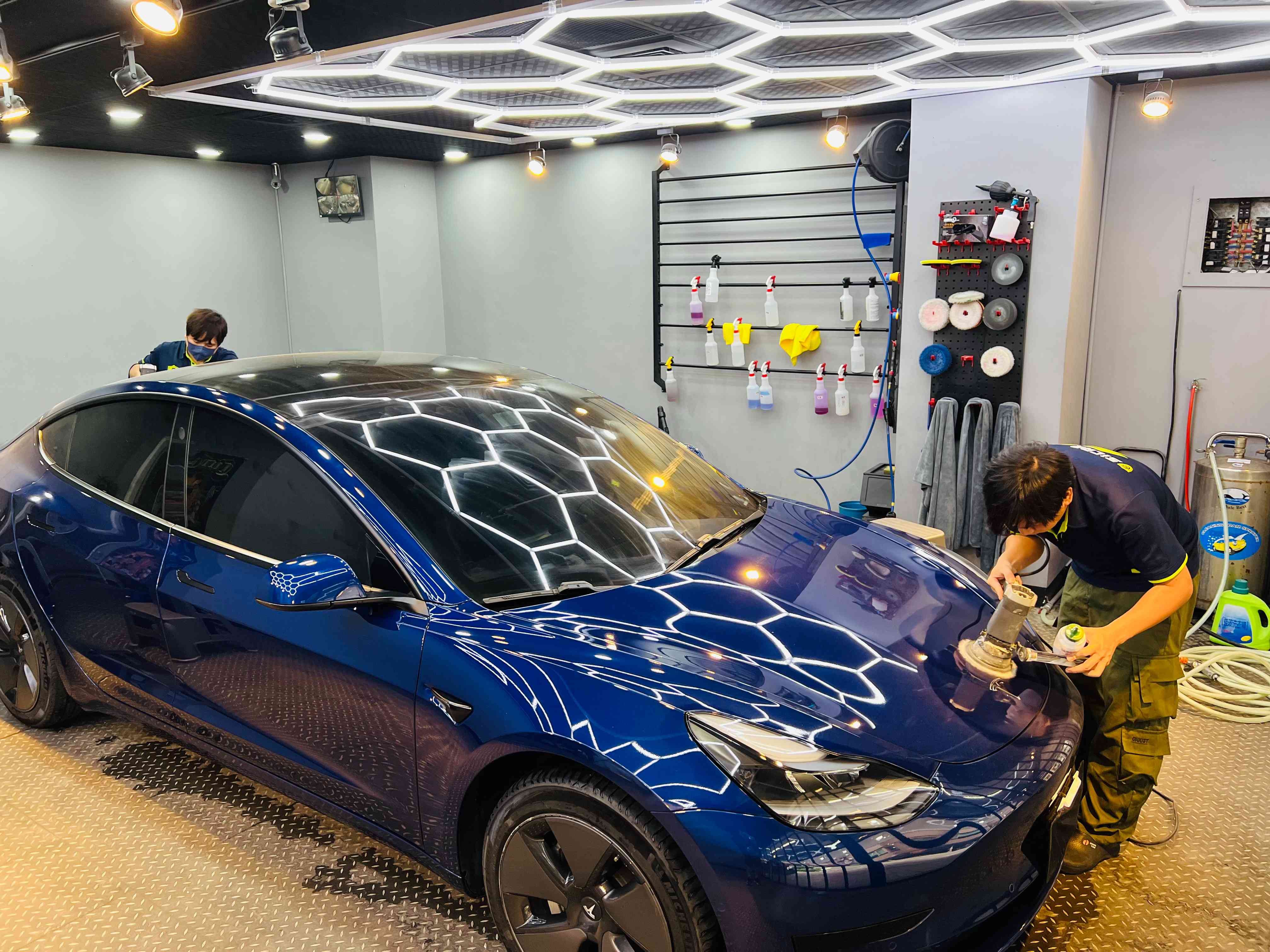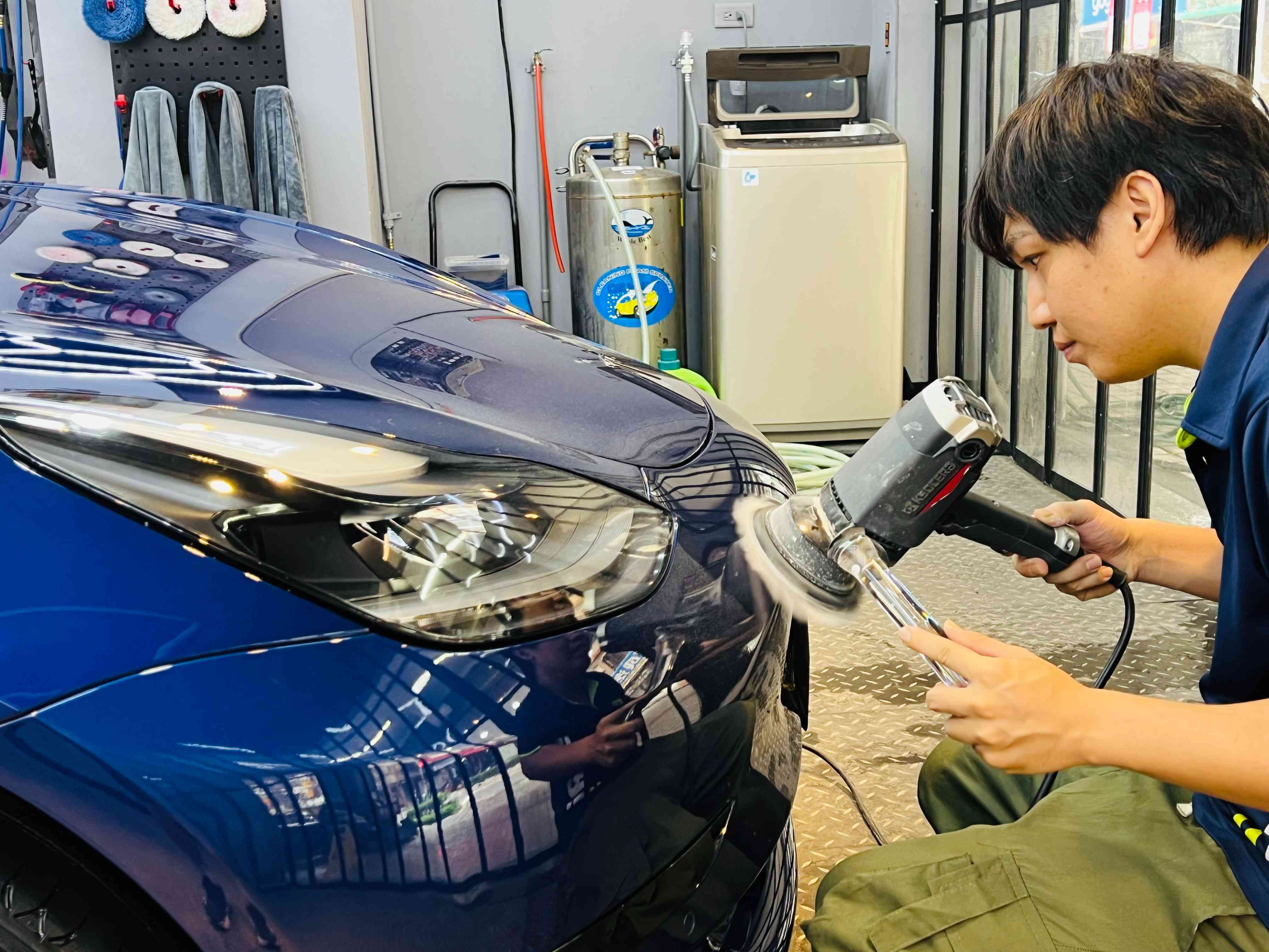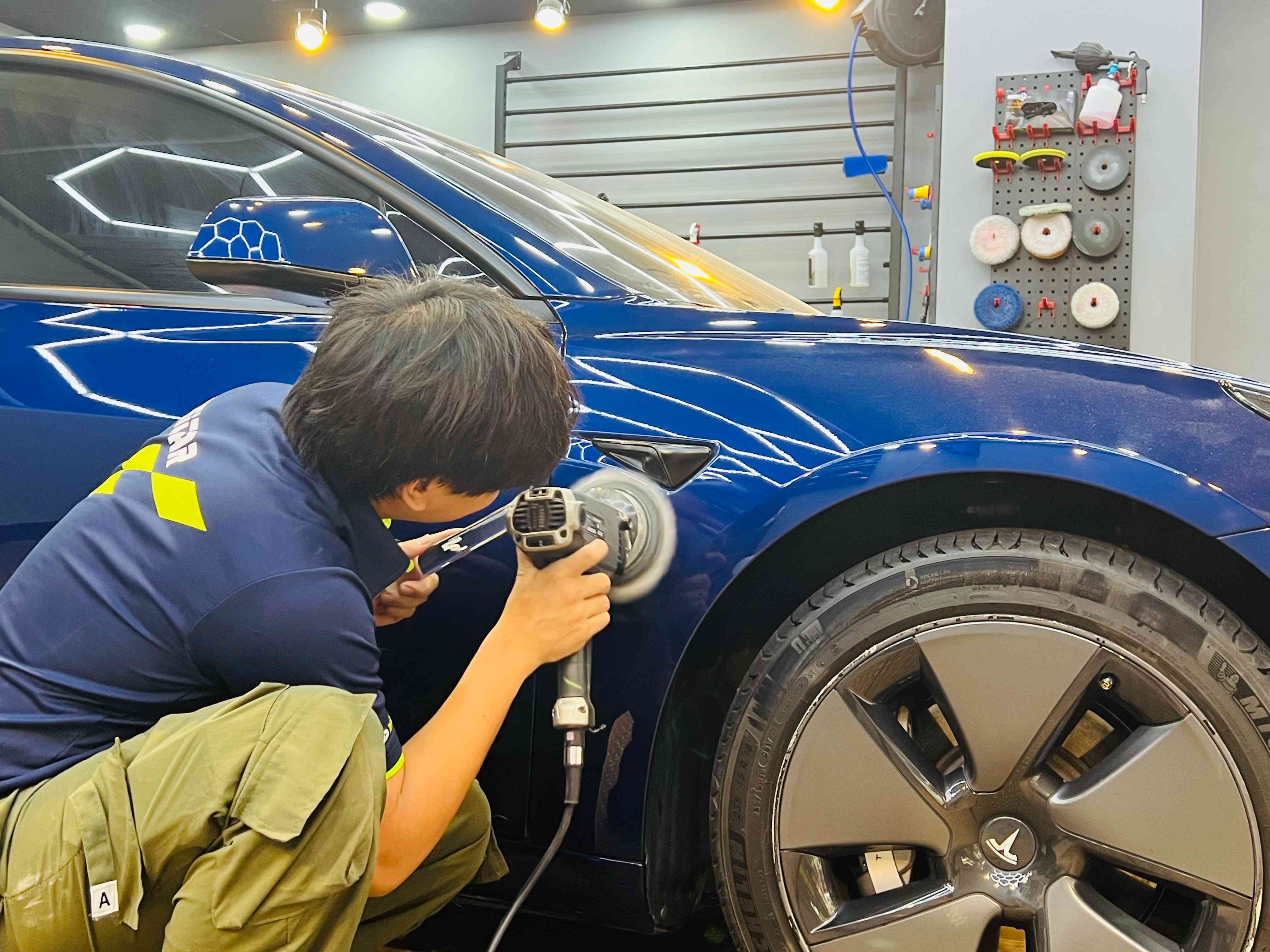經歷三道深度清潔完,就是拋光「整肌」。就像每次看到鏡子裡的自己突然覺得暗沉,決定交給專業讓肌膚 reset 一下。技師會用不同粒度的研磨,逐層把細紋、霧化、水斑校正回來,讓車漆恢復平整、均勻、透亮。這一瞬間,你彷彿看到車子回到剛交車時,那種「哇」的一聲的光澤,熟悉又令人心動。