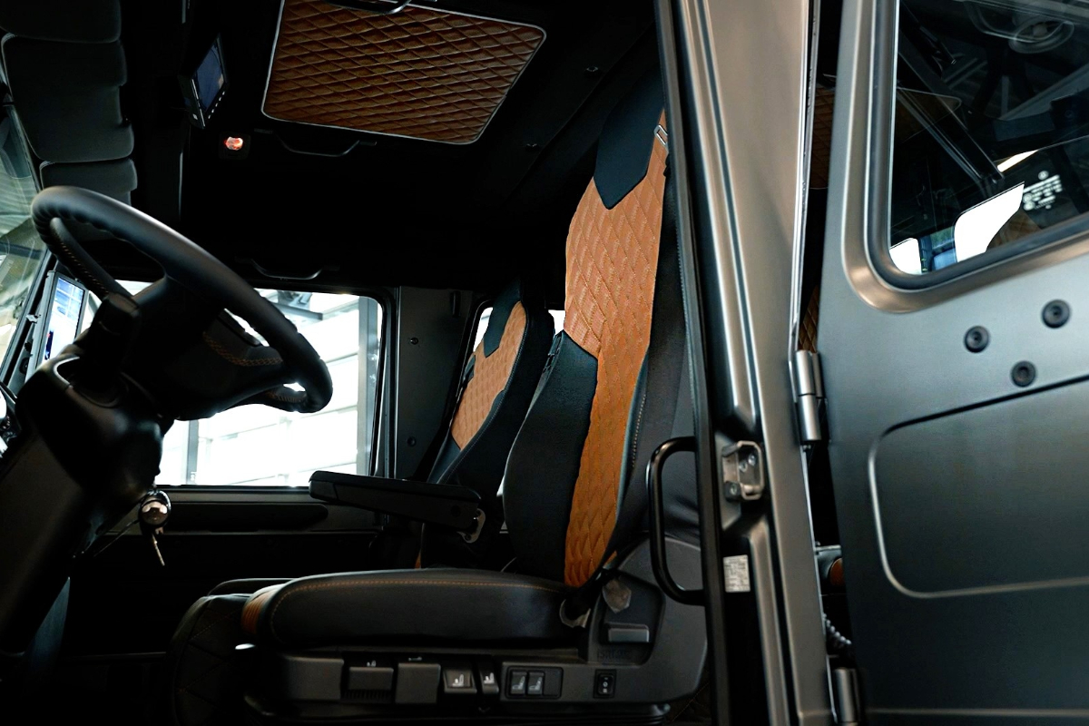 這款獨一無二的Unimog,融合了一貫的地形穿越能力與高調的外觀,目標是能讓駕駛輕鬆穿越泥濘,也能在豪華場合展現財力與肌肉,其核心是來自自家,具備三具差速鎖的硬派車型Unimog U 4023,兩者之間最大的不同是動力,概念車更加硬派。