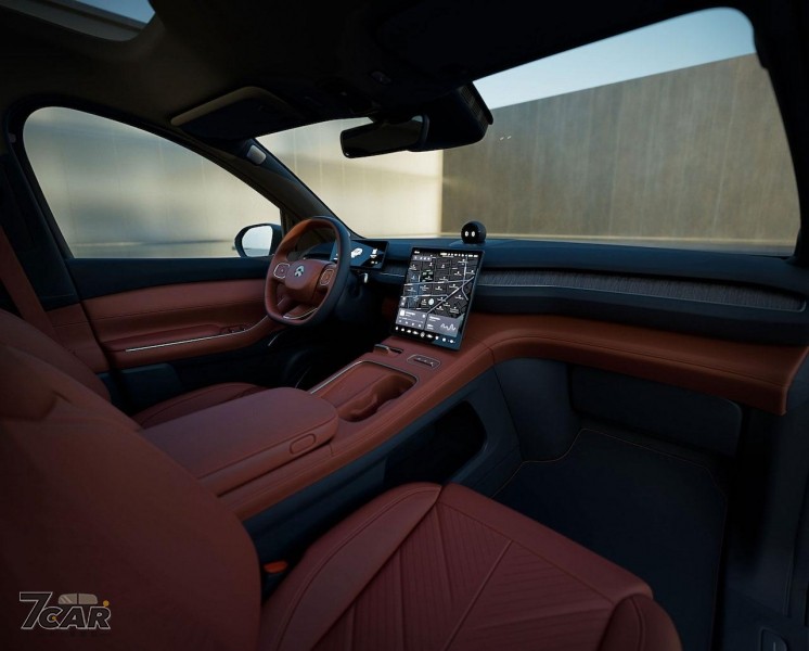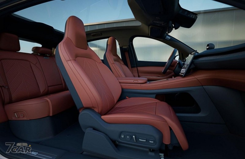 內裝方面,EC7 採用品牌第二代數位化座艙,前擋風玻璃具有 16 吋彩色抬頭顯示功能,中控台上方配置具備 AI 語音功能的 NOMI,下方搭載 12.8 吋 AMOLED 觸控螢幕車載系統,內建 Banyan 作業系統,車頂導入面積 1.94 平方公尺的天窗,支援 5 段透光度調整,副駕駛座椅支援單鍵躺下功能,腿托可進行電熱。而科技部分,EC7 具備 NAD 自動駕駛,並配備 Aquila 系統來達到 V2X 功能。