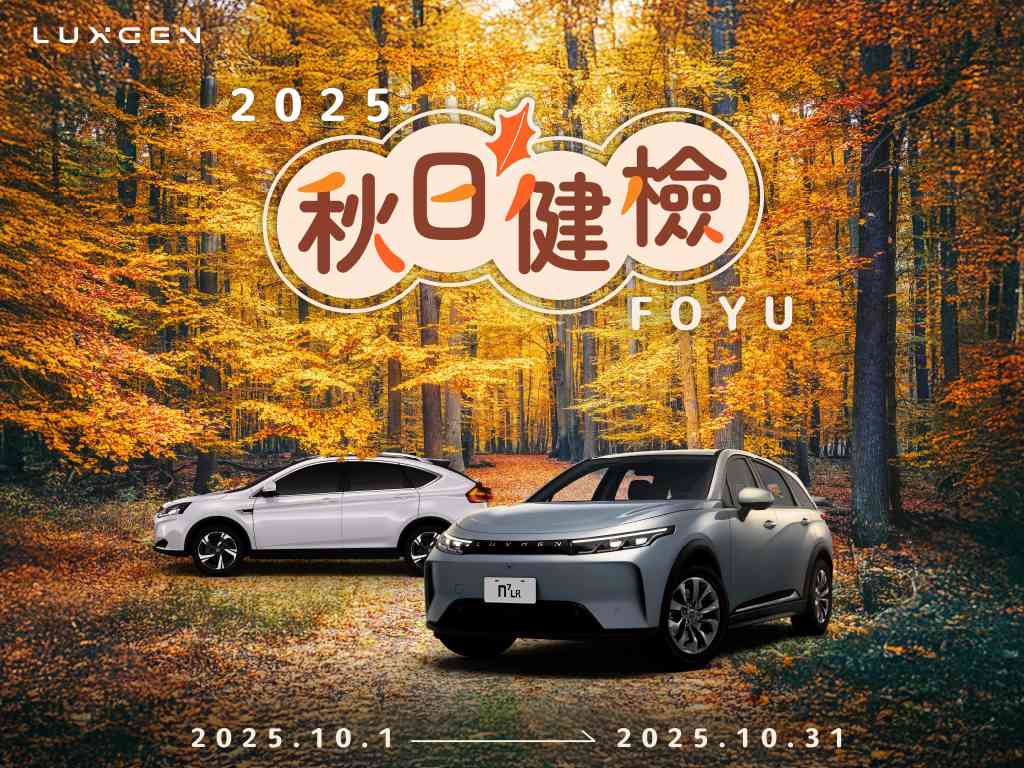 秋意漸濃,正是適合全家大小出遊的好時節!LUXGEN為讓國人提早安排10月連假出遊計劃,同時滿足所有車主行車安全的需求,自10/1(三)至10/31(五)止全面展開「2025 LUXGEN FOYU秋日健檢」活動(1),貼心提供車主「全車安全健檢」、「專屬優惠套餐」、「指定零件折扣」,消費滿額再享「亮點回饋」,活動期間同步再推出n7專屬原廠配件超值優惠,LUXGEN誠摯邀請車主及早預約回廠進行愛車健檢,給予所有乘員們安心無虞、自在享樂的美好時光!
