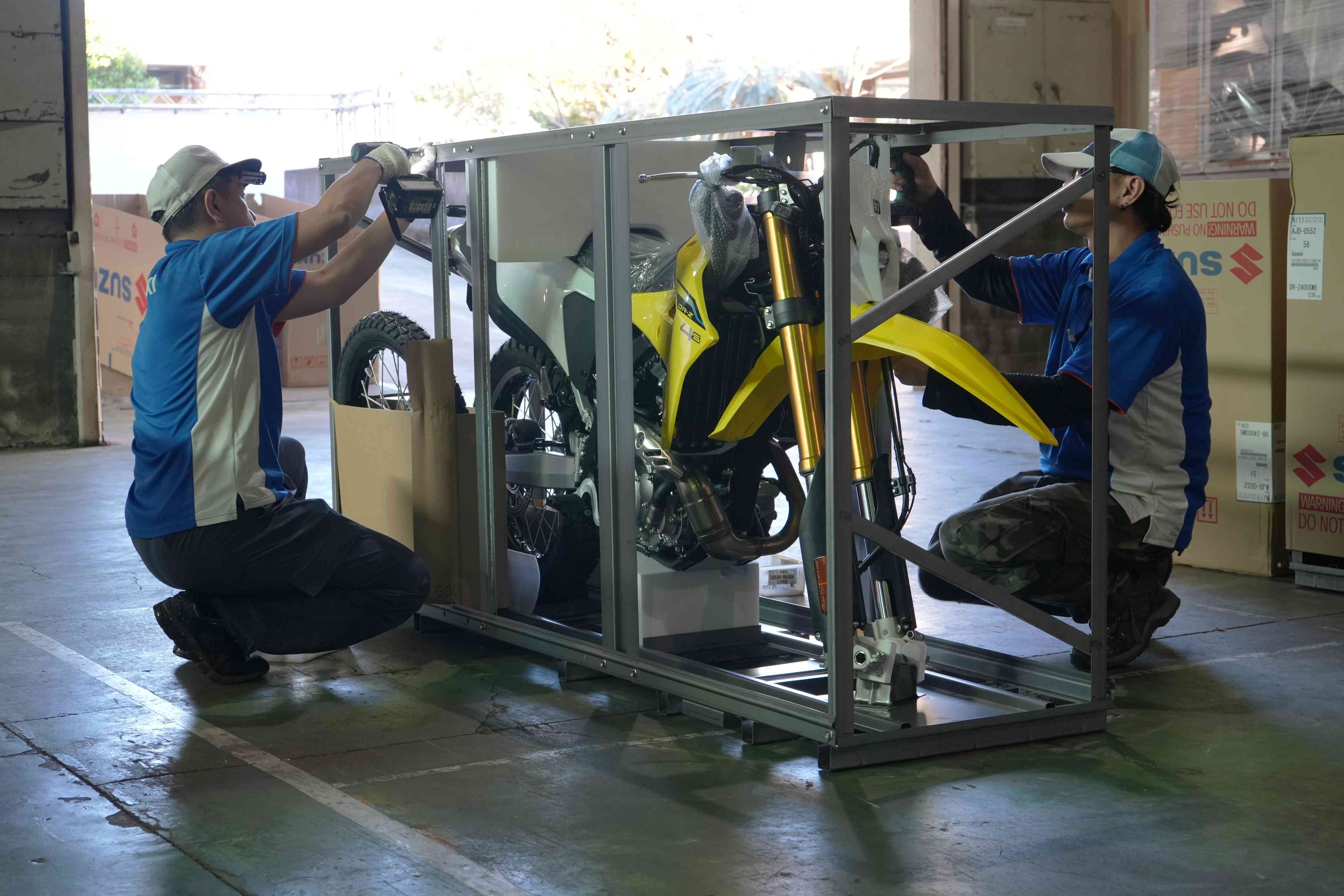 儀式首先見到的都是經過完整包裝的箱子,每輛車都來自日本,車主開箱後見到的是由鐵架組合而成的鐵籠,內部的車輛都完整的鎖在其中,目的是保護每輛車在集裝與運輸過程,不會受到傷害,而車主確實親眼見證,來自日本的精緻組裝。