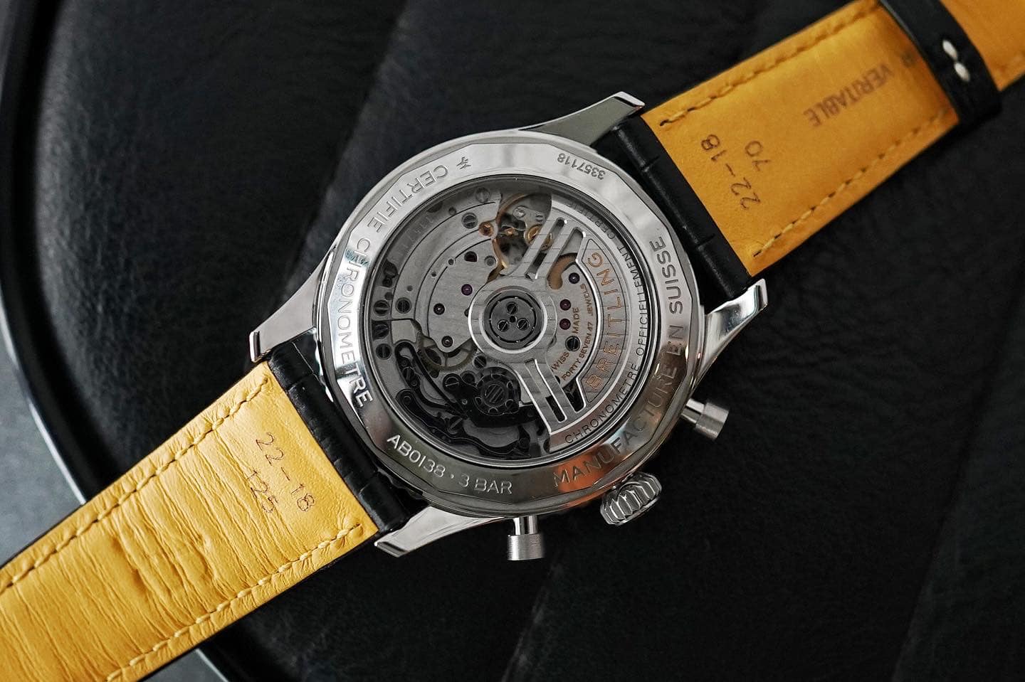 但個人最喜歡的還是自動盤的鏤空設計,完全把B01的質感提昇了一個檔次,大家都知道龍哥是Navitimer的頭號錶迷,準備好!