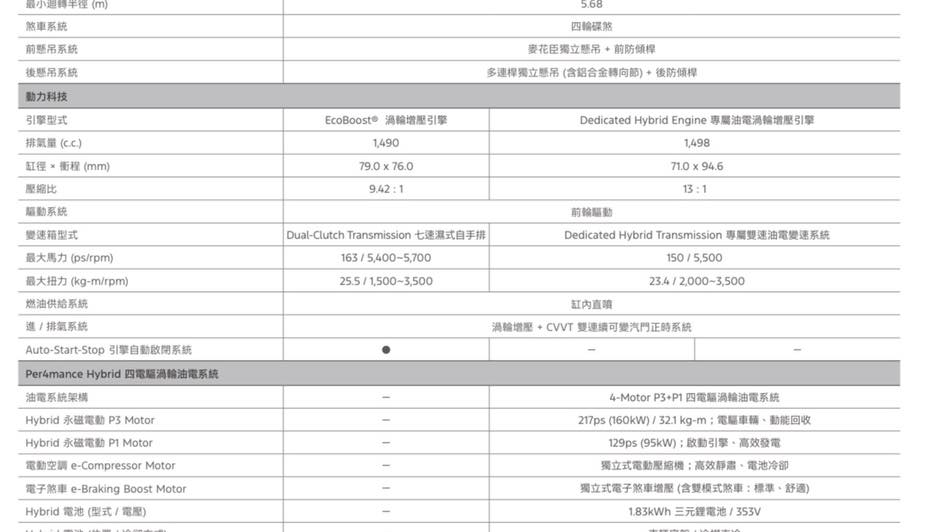 Ford 官方宣稱,該系統在動力輸出與能耗表現都達到同級領先水準,目標是吸引原本關注傳統 1.5T SUV 的家庭買家,升級到更先進、更節能的油電科技。