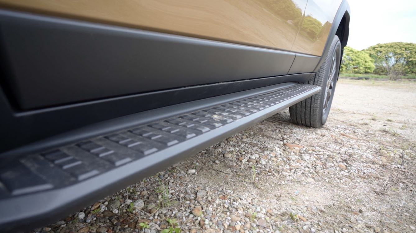 而作為越野車款當然也少不了一些比較越野的造型及方便性的功能,比如露營和旅遊非常方便的車頂架、方便上車的車側踏板、下方一些適量的防刮材質和點綴的霧銀飾板等.