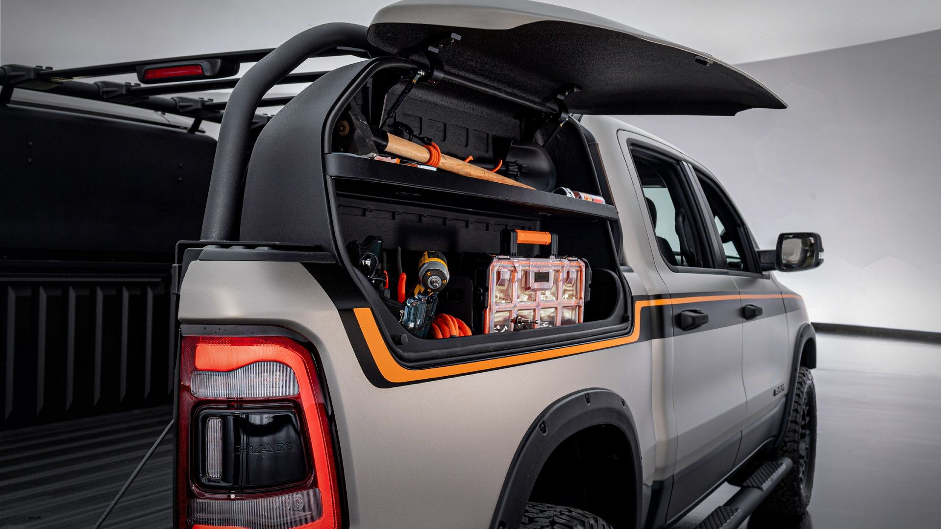 除此之外,這輛 RAM 1500 Backcountry X 更是主打空間機能,除了在後斗兩側增加可收納的置物架外,還讓整個後斗的使用空間增加了 68% 以上,也改善了皮卡車型在空間規劃上的缺陷。